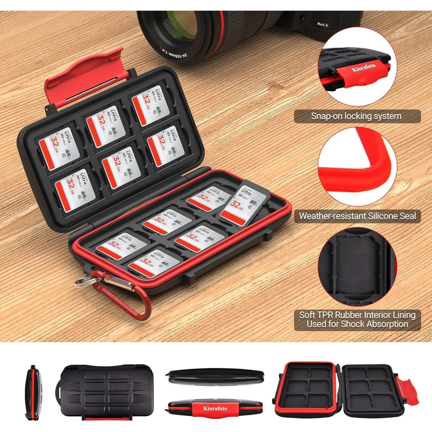 Die Kiorafoto 12 Slots SD Karten Aufbewahrung Box ist die ideale Lösung, um Ihre wertvollen Speicherkarten sicher und organisiert zu halten. Das speziell entwickelte Etui bietet eine Vielzahl von Funktionen, die es zu einem Must-Have für Fotografen und Technik-Enthusiasten machen.