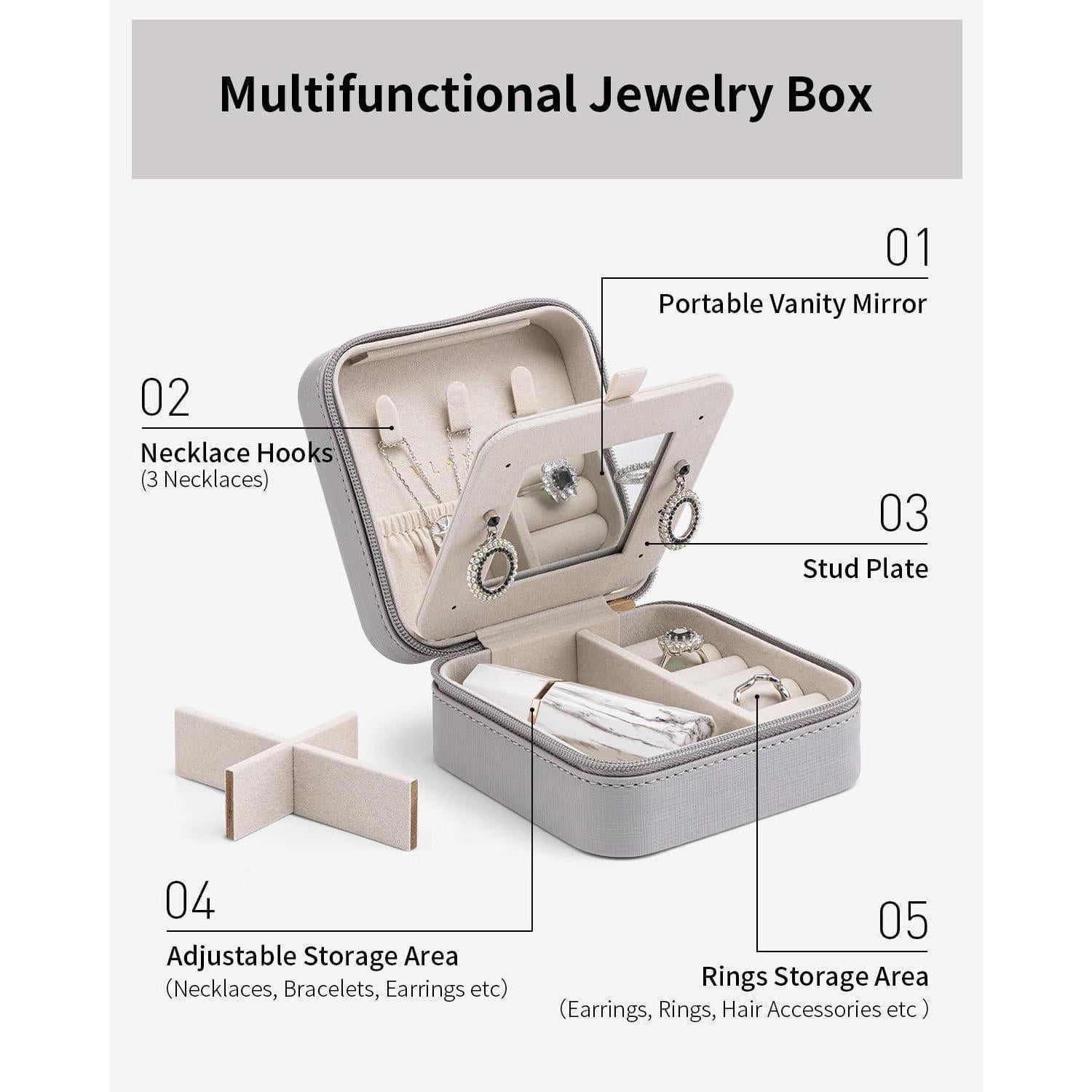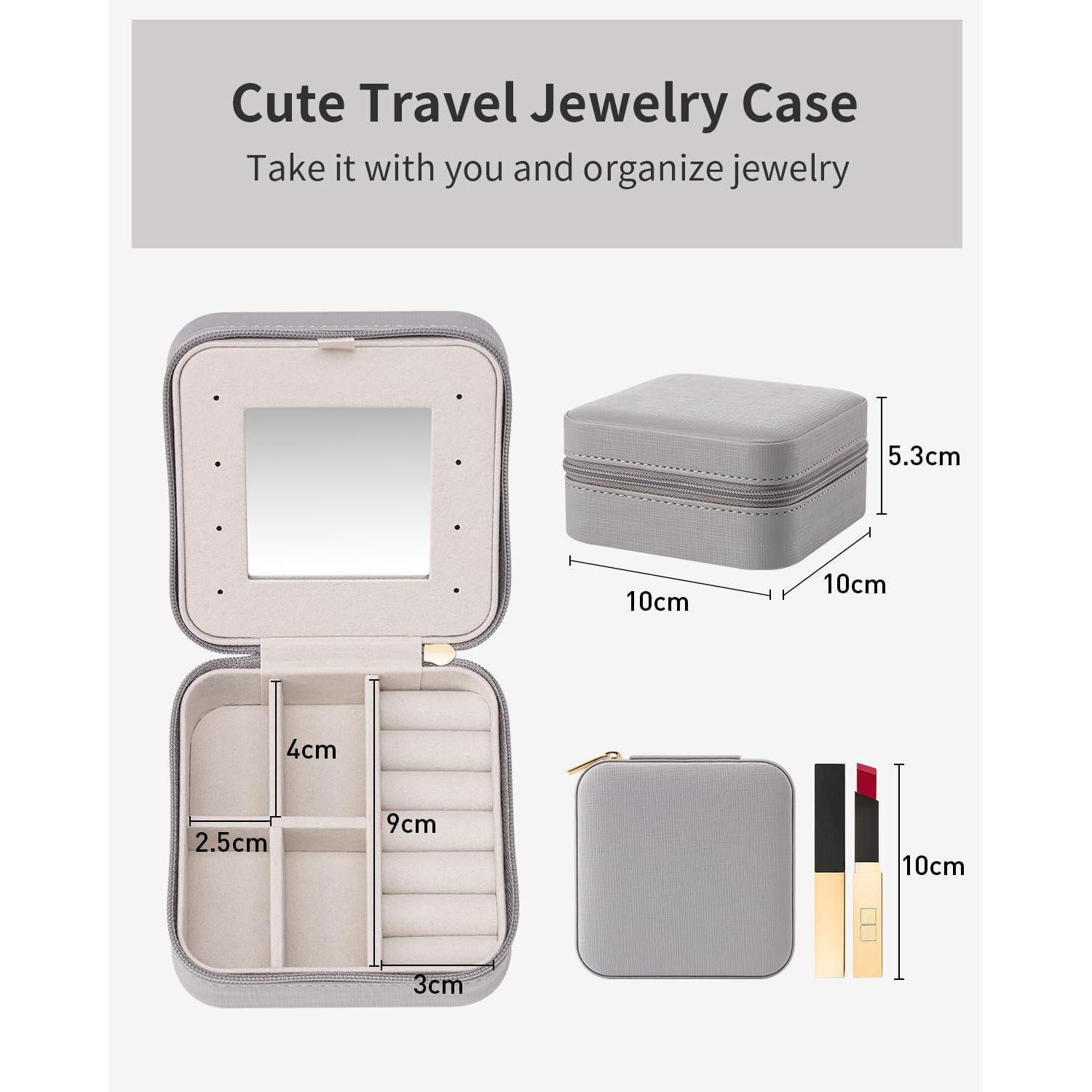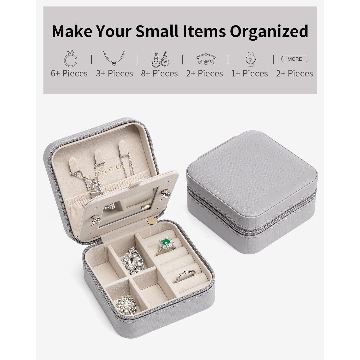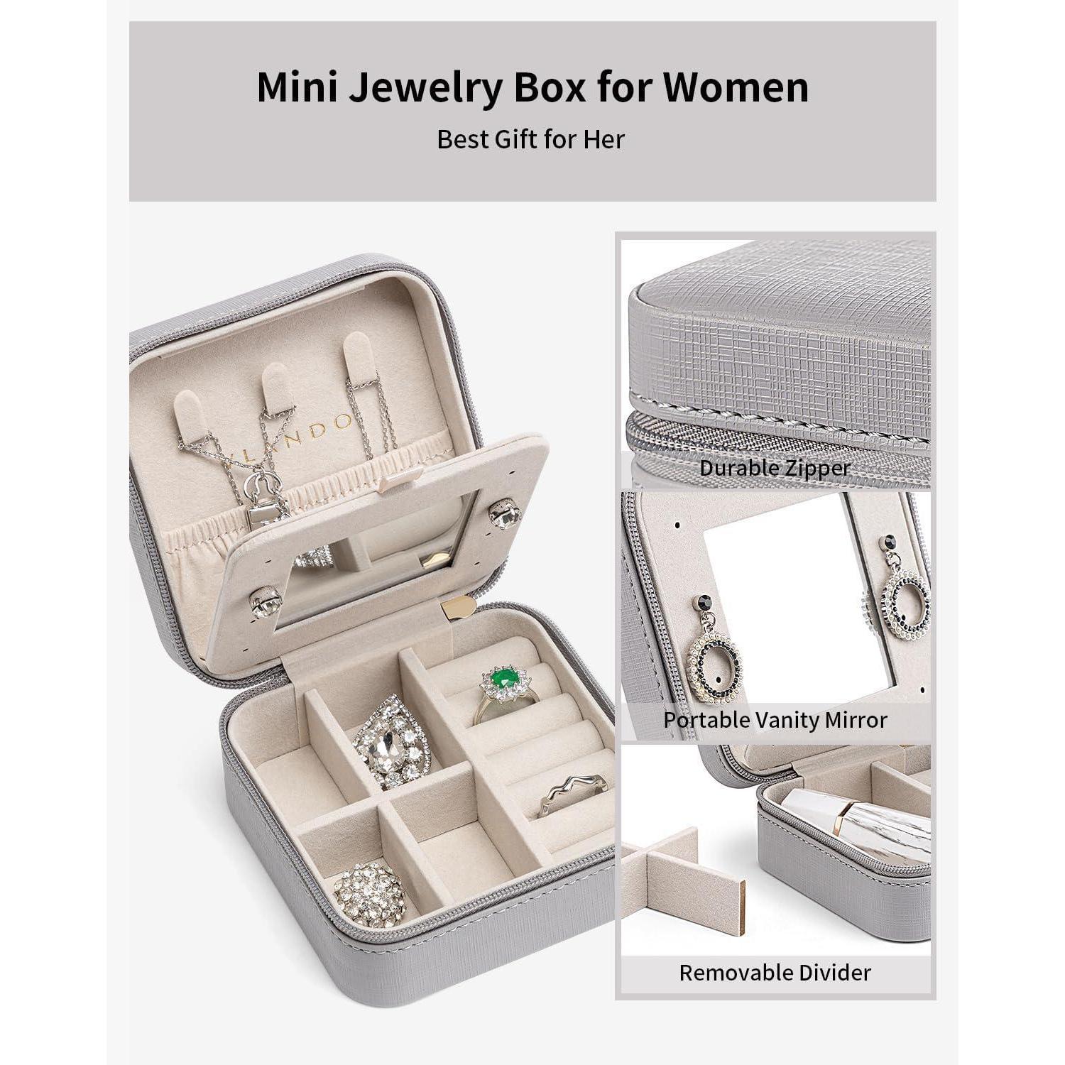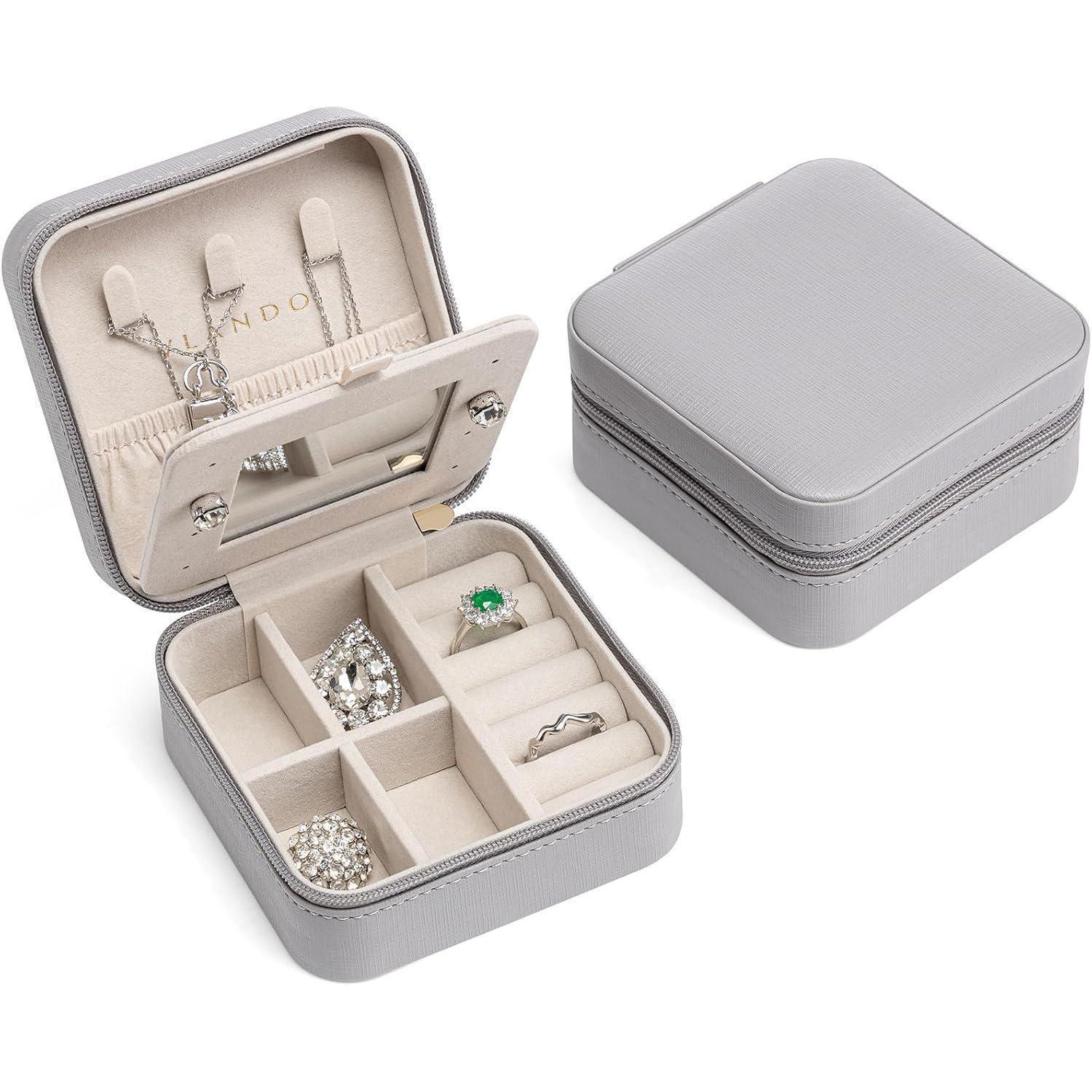 Kleine Schmuckbox mit Spiegel und Lederetui für