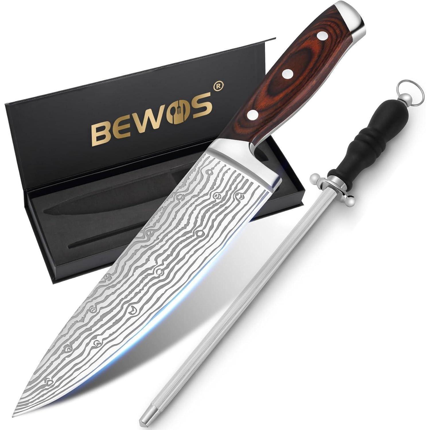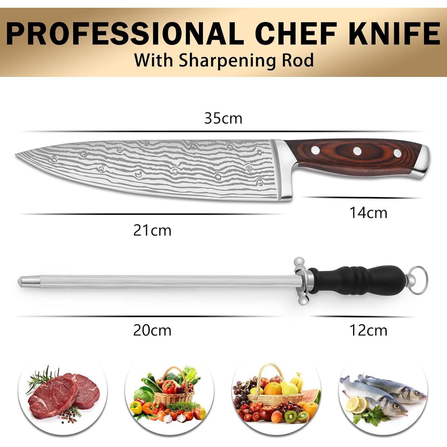 Kochmesser mit Messerschleifer 21 cm Damast Küchenmesser