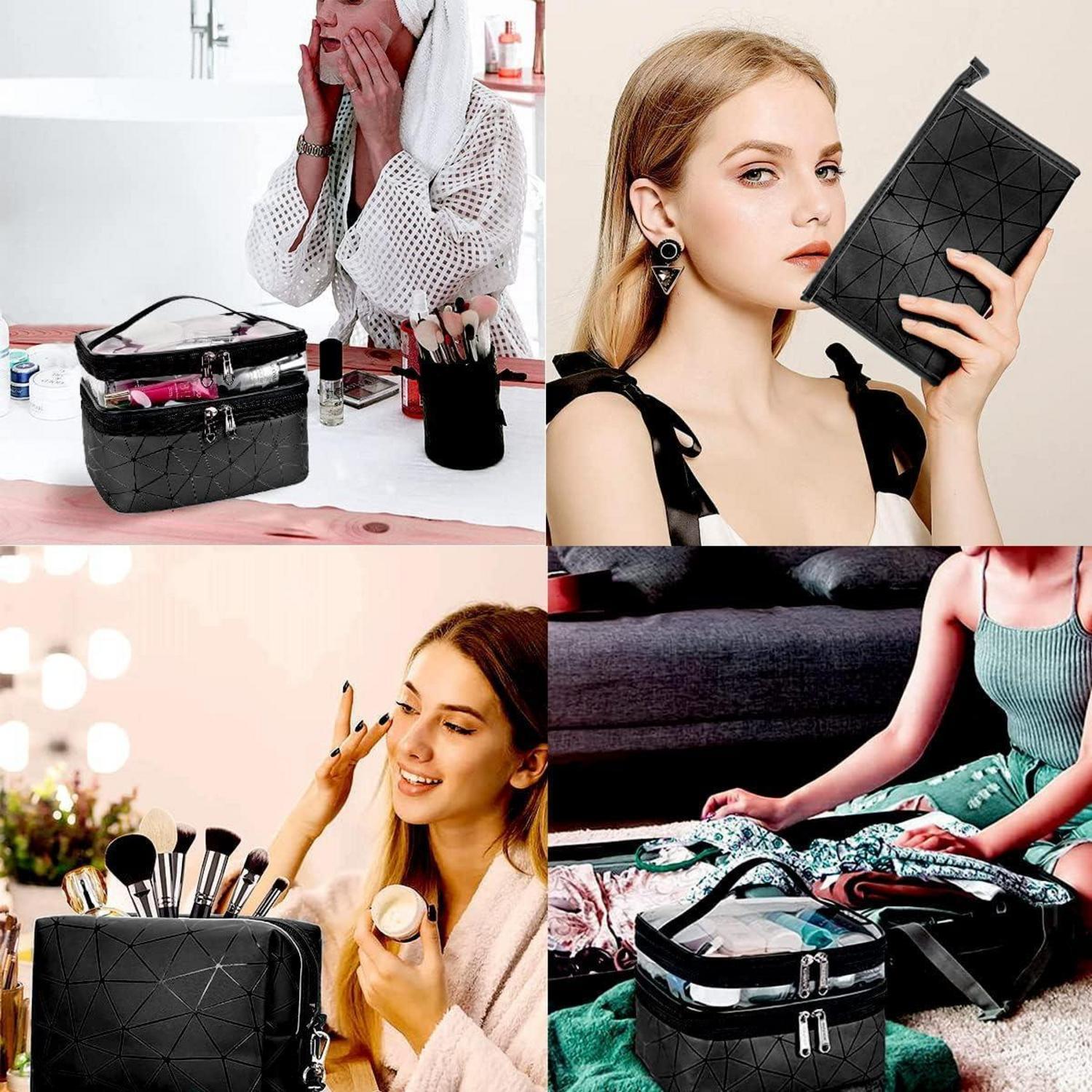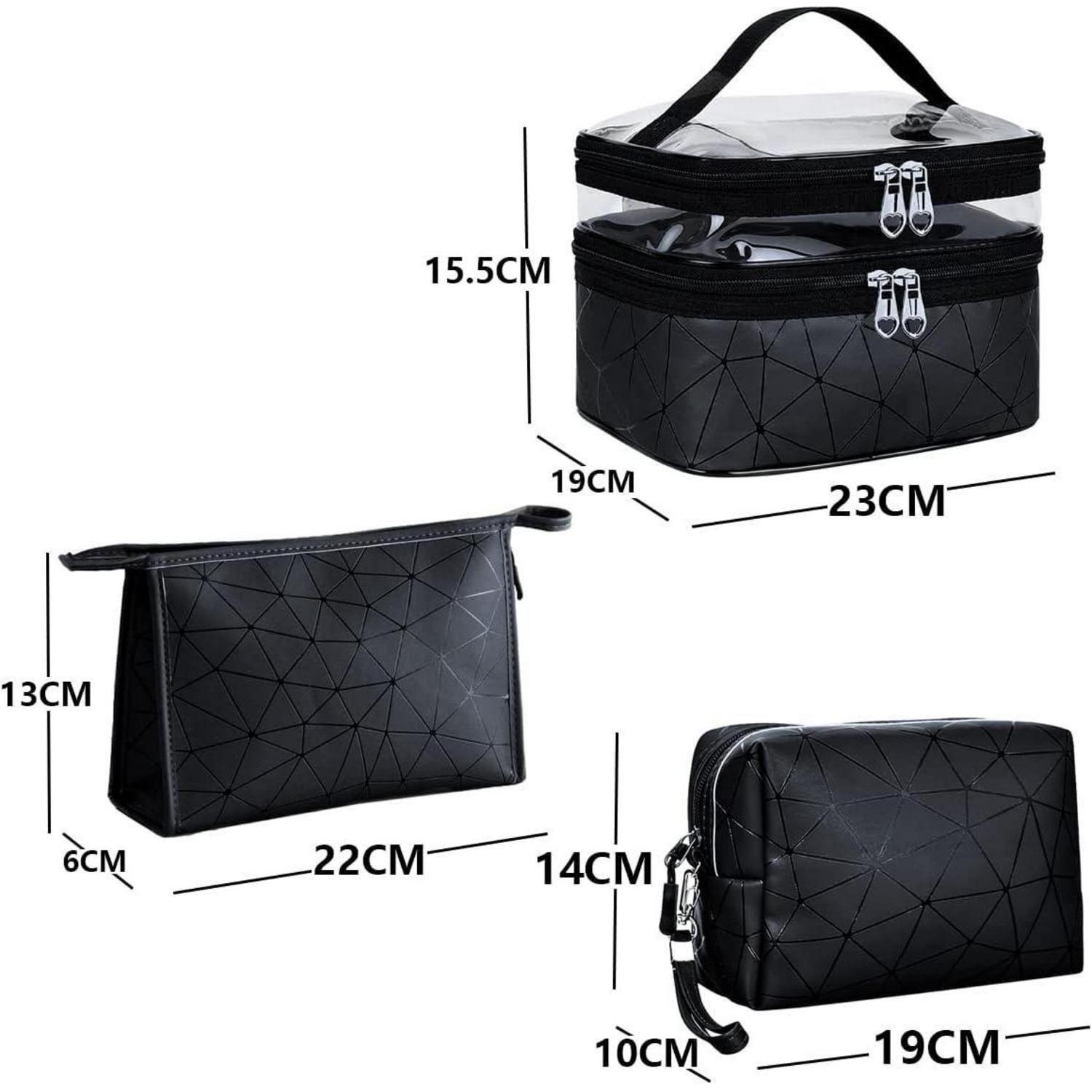 Kosmetiktasche Set Schwarz 3 Stück Doppellagig
