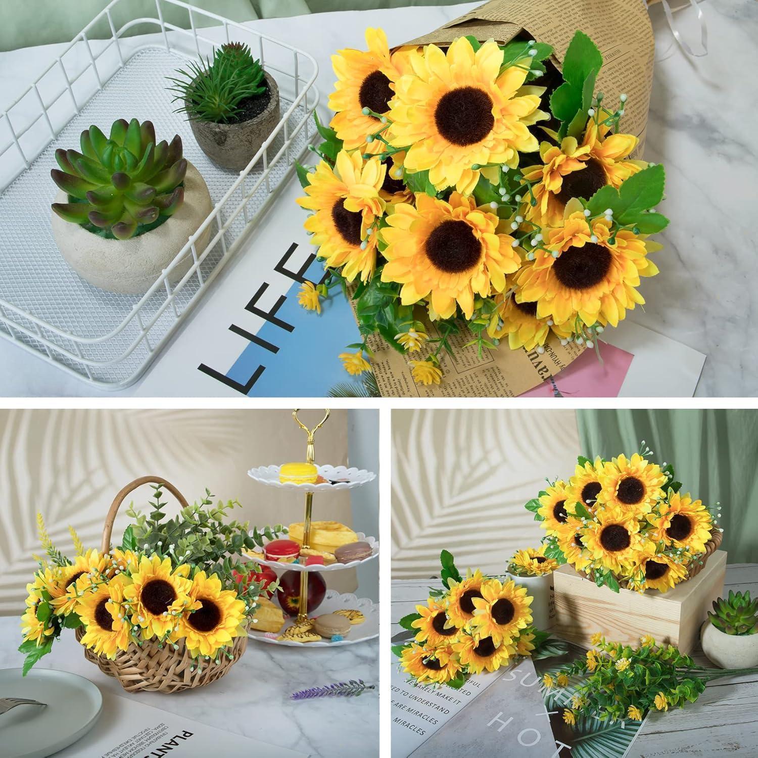 Künstliche Sonnenblumen 3 Bünde für Blumendeko, Innen & Außen