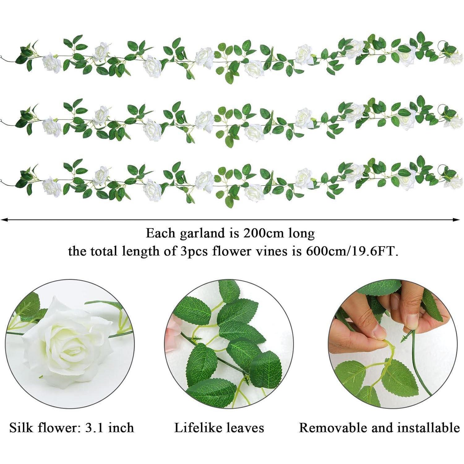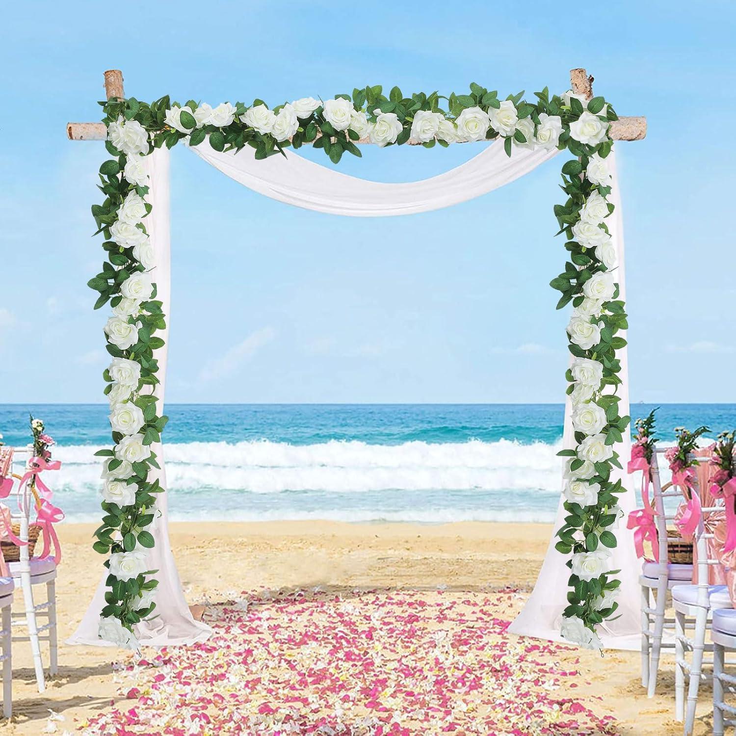 Künstliche Weiße Rosengirlande für Hochzeit und Deko 3 Stück