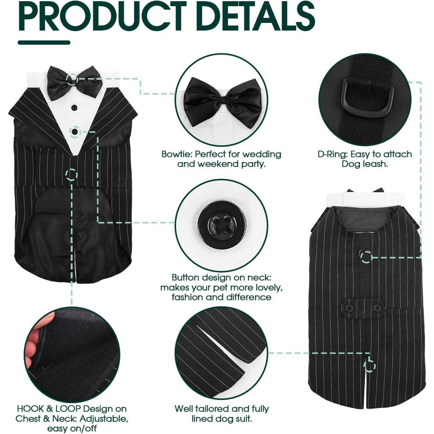 Das Kuoser Hund Smoking Anzug & Bandana Set ist die perfekte Wahl, um Ihren Hund stilvoll zu kleiden und sicherzustellen, dass er bei besonderen Anlässen im Mittelpunkt steht.