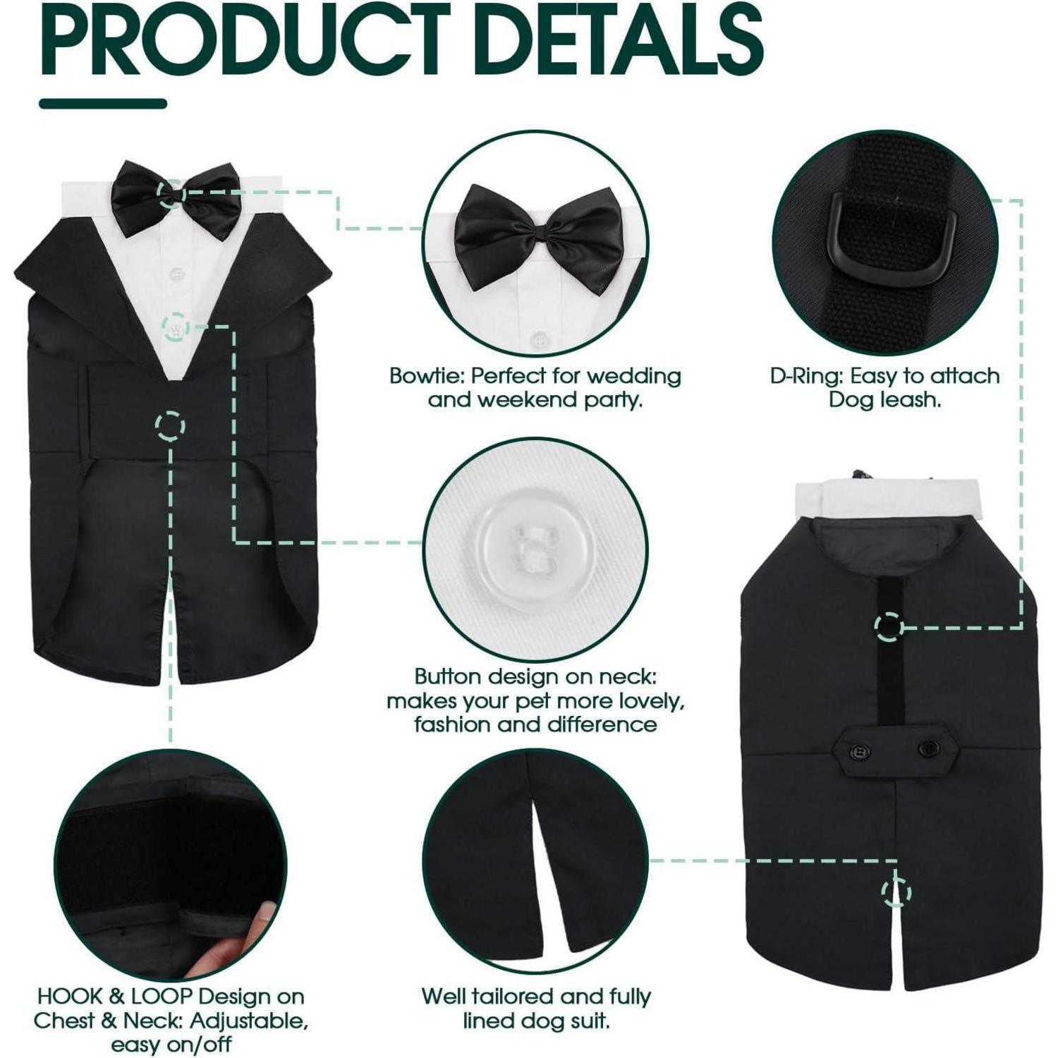 Verleihen Sie Ihrem Haustier mit dem Kuoser Hund Smoking Anzug & Bandana Set einen königlichen Look und lassen Sie ihn im Mittelpunkt stehen, egal zu welchem Anlass!