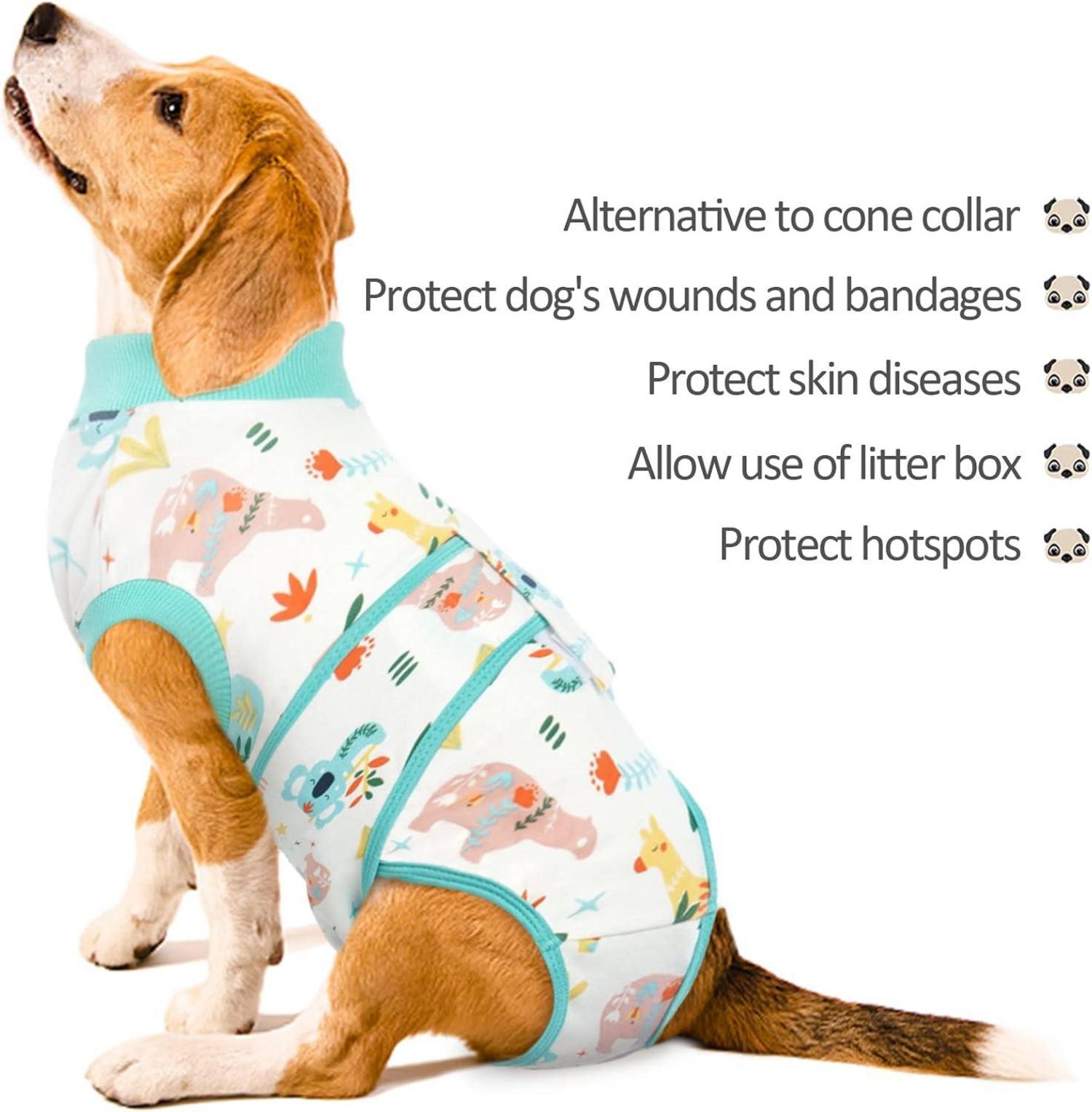 Der Hundebody schützt Ihr Haustier vor dem Lecken, Kratzen oder Berühren von Wunden, Schnitten oder Bandagen. Er ist eine bequeme Alternative zu sperrigen Kegel-E-Kragen und hilft dabei, Ihr Haustier ruhig und stressfrei zu halten. Das hochelastische Baumwollmaterial ist leicht, super weich und atmungsaktiv, ohne die Bewegungsfreiheit Ihres Lieblings einzuschränken. In den Größen XS, S, M, L, XL, 2XL erhältlich für Hunde und Katzen aller Größen.