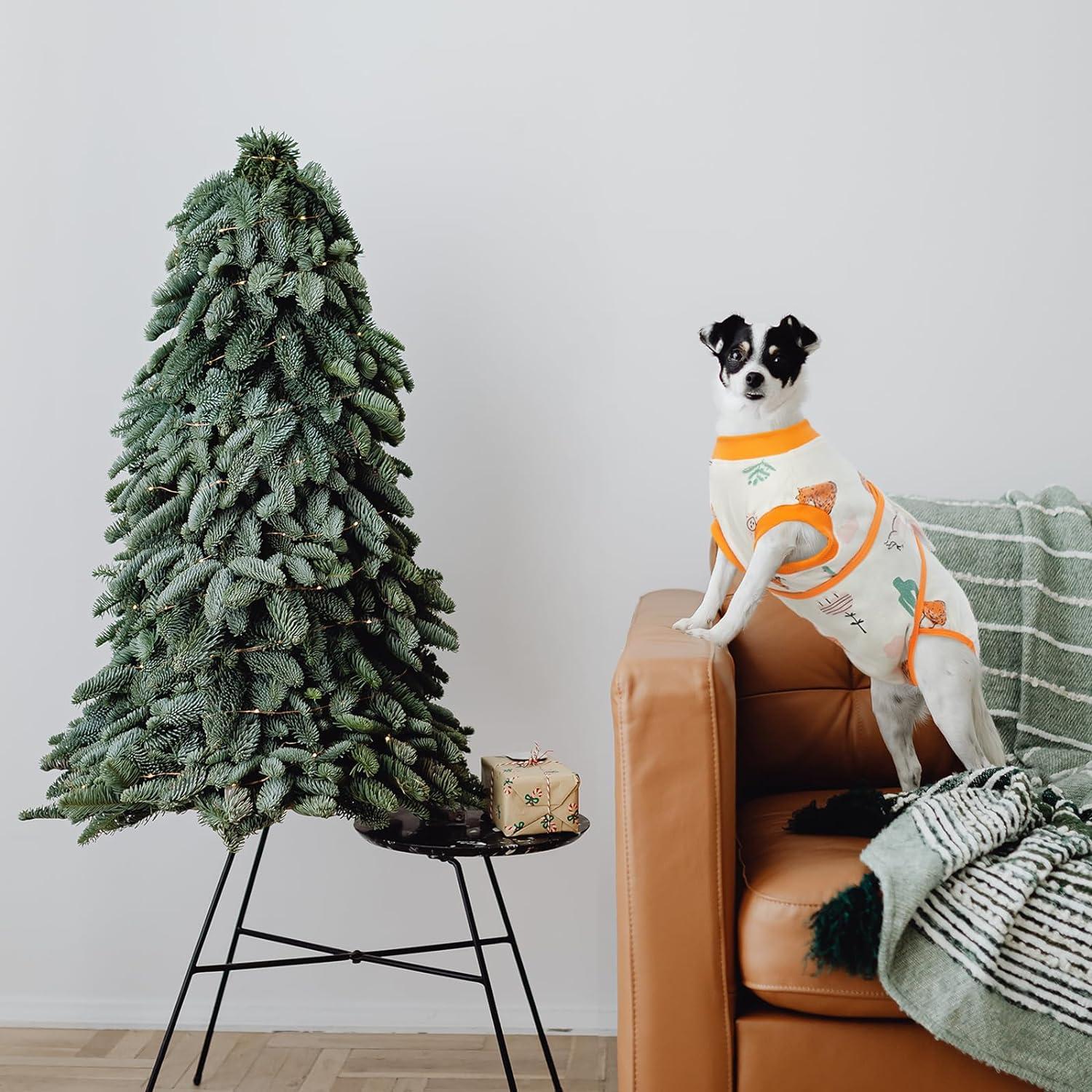 Der Hundebody ist aus hochelastischem, atmungsaktivem Baumwollmaterial gefertigt, das weich auf der Haut liegt und leicht zu waschen ist. Erhältlich in den Größen XS, S, M, L, XL und 2XL für Hunde und Katzen unterschiedlicher Größen. Vor dem Kauf sollten Sie die Größe Ihres Haustiers sorgfältig messen, um die richtige Passform zu gewährleisten.