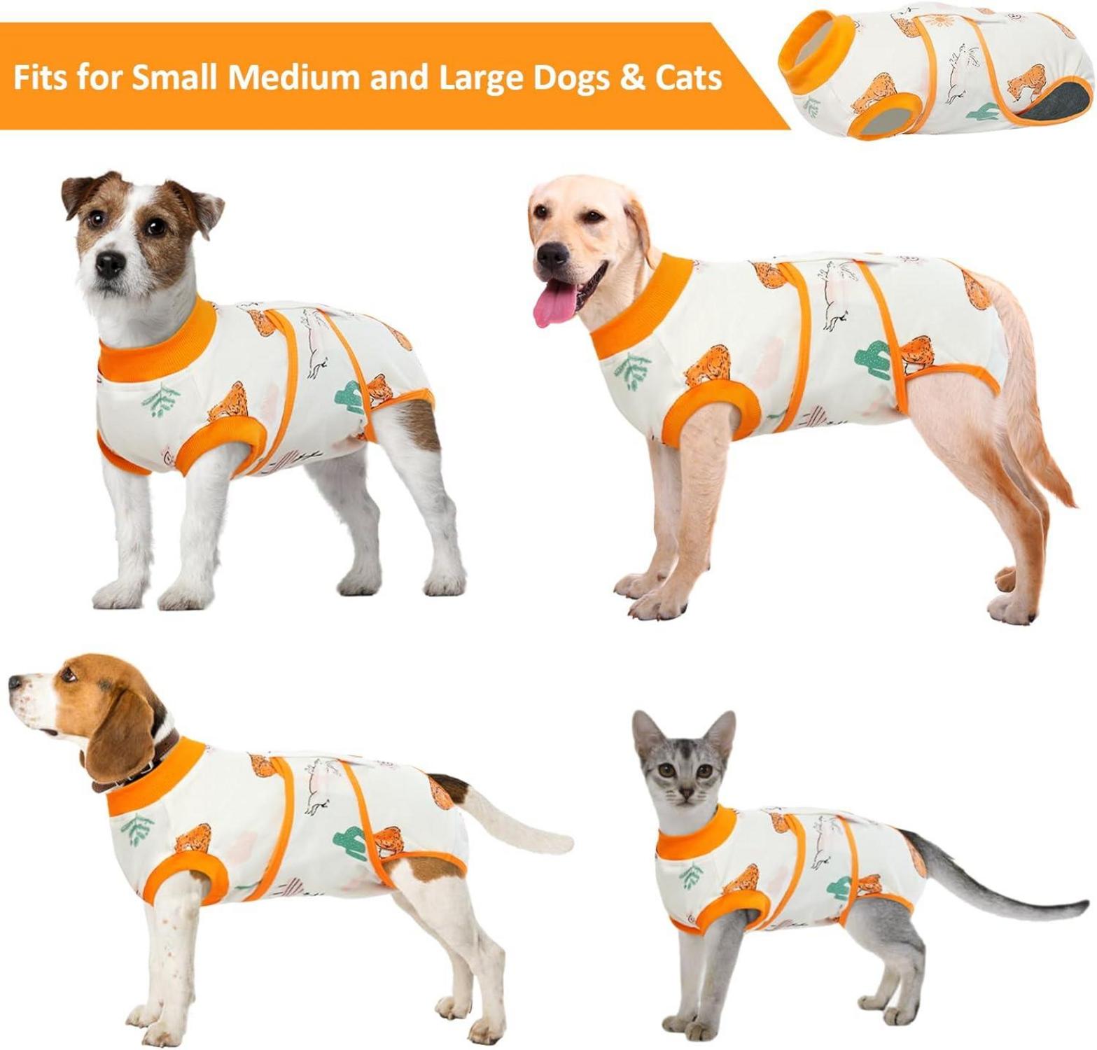 Der Hundebody aus reiner Baumwolle schützt Ihr Haustier perfekt vor Verletzungen nach einer Operation oder Kastration. Der Schneider kann unter dem Bauch gerollt und mit dem Magic-Tape fixiert werden. Dieses medizinische Pet-Shirt wurde entwickelt, um Wunden, Schnitte oder Infektionen zu schützen und Ihr Haustier ruhig und stressfrei zu halten, ohne seine Bewegungen einzuschränken. Eine ideale Alternative zu Kegel-E-Kragen, die Ihrem Hund mehr Komfort beim Essen, Schlafen und Spazierengehen bietet.