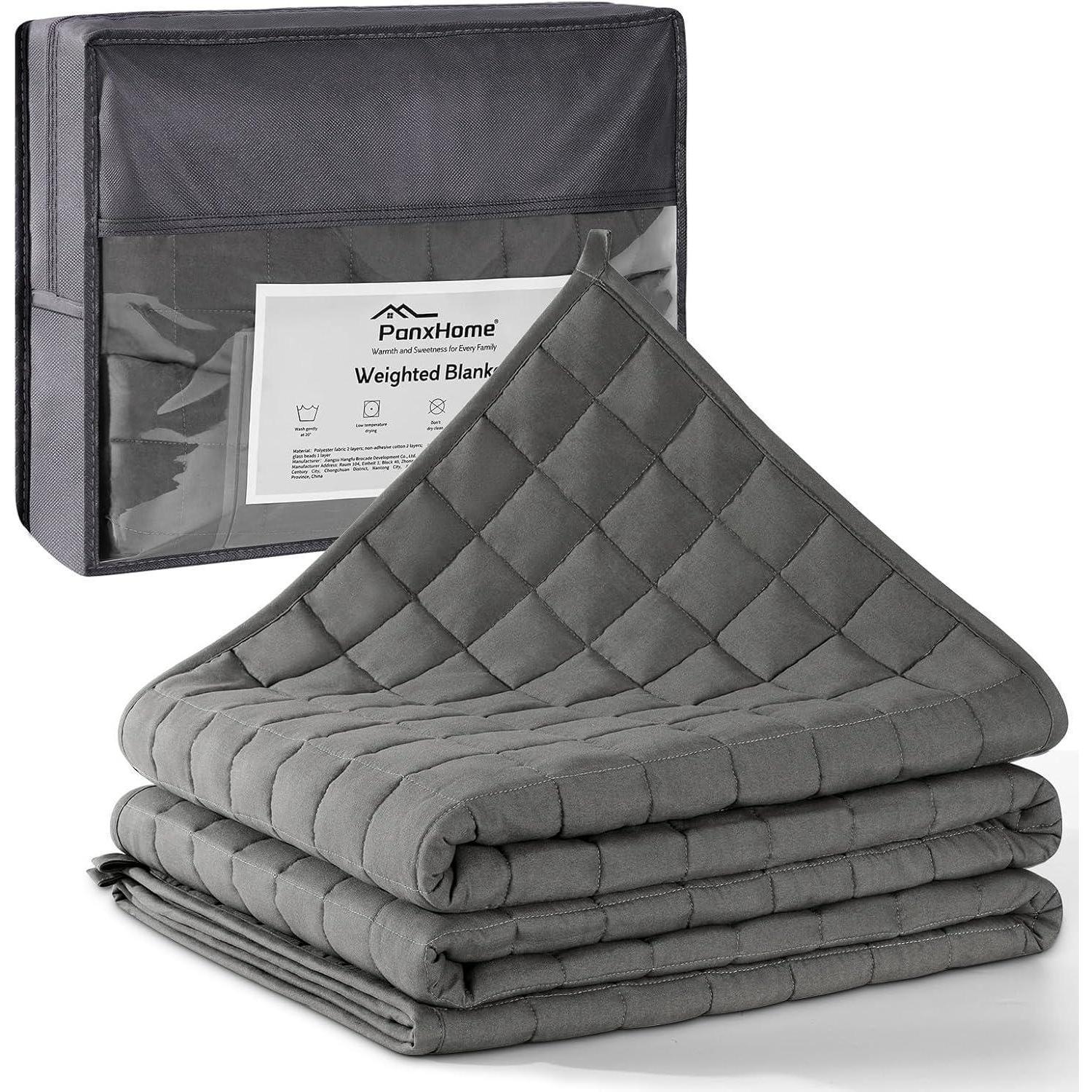 Die bezug gewichtsdecke weighted blanket von PanxHome ist durch ihr innovatives 5-Schichten-Design konzipiert, um den Druck gleichmäßig zu verteilen. Das Baumwollmaterial umhüllt zwei zusätzliche Schichten aus Polyester, um ein Austreten der Perlen zu verhindern. Durch präzise Nähte bleiben die ungiftigen Perlen in den 5 x 5 cm Taschen fest an ihrem Platz, ohne Geräusche zu erzeugen.