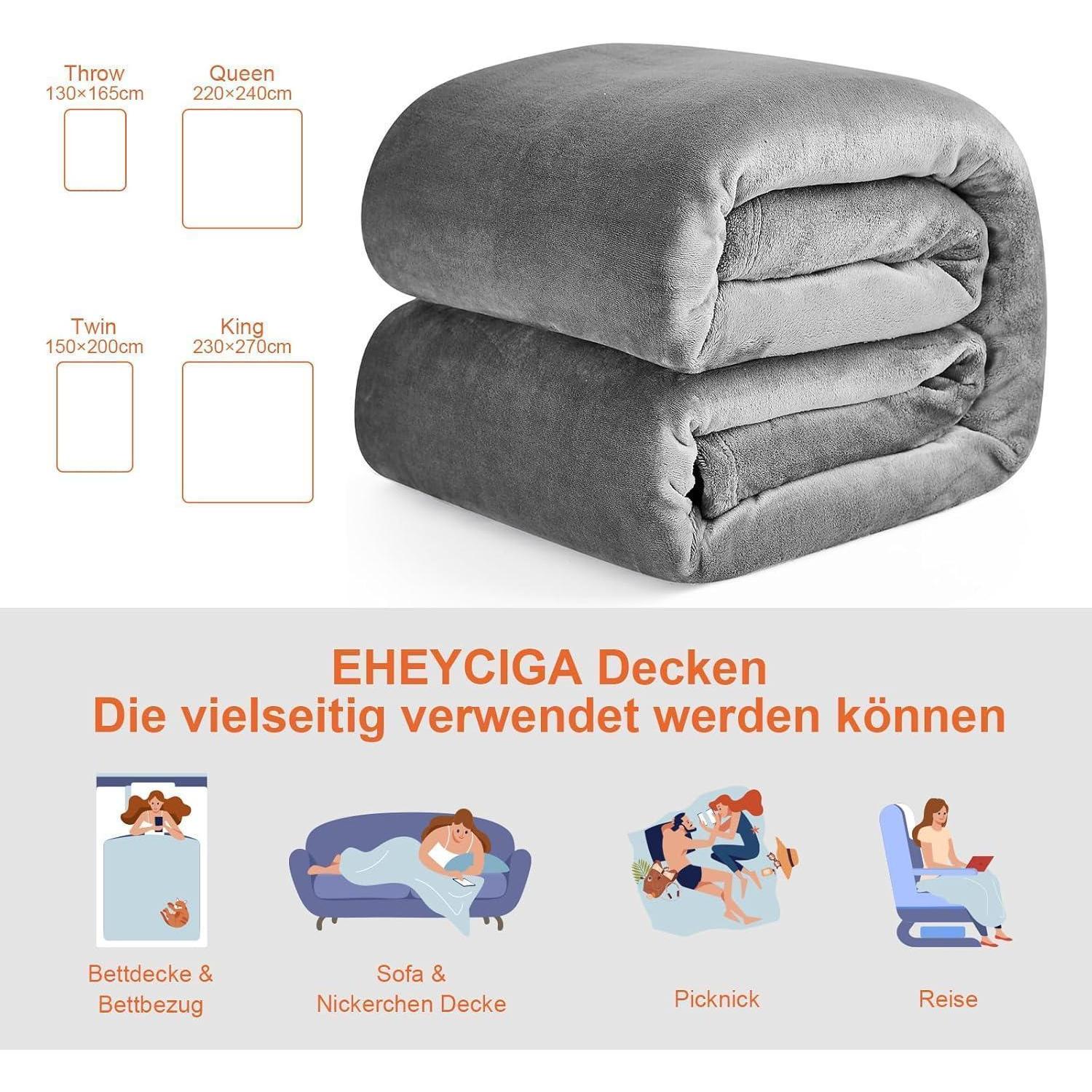 Kuscheldecke flauschig Grau weiche warme Fleecedecke 150x200