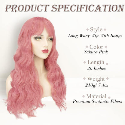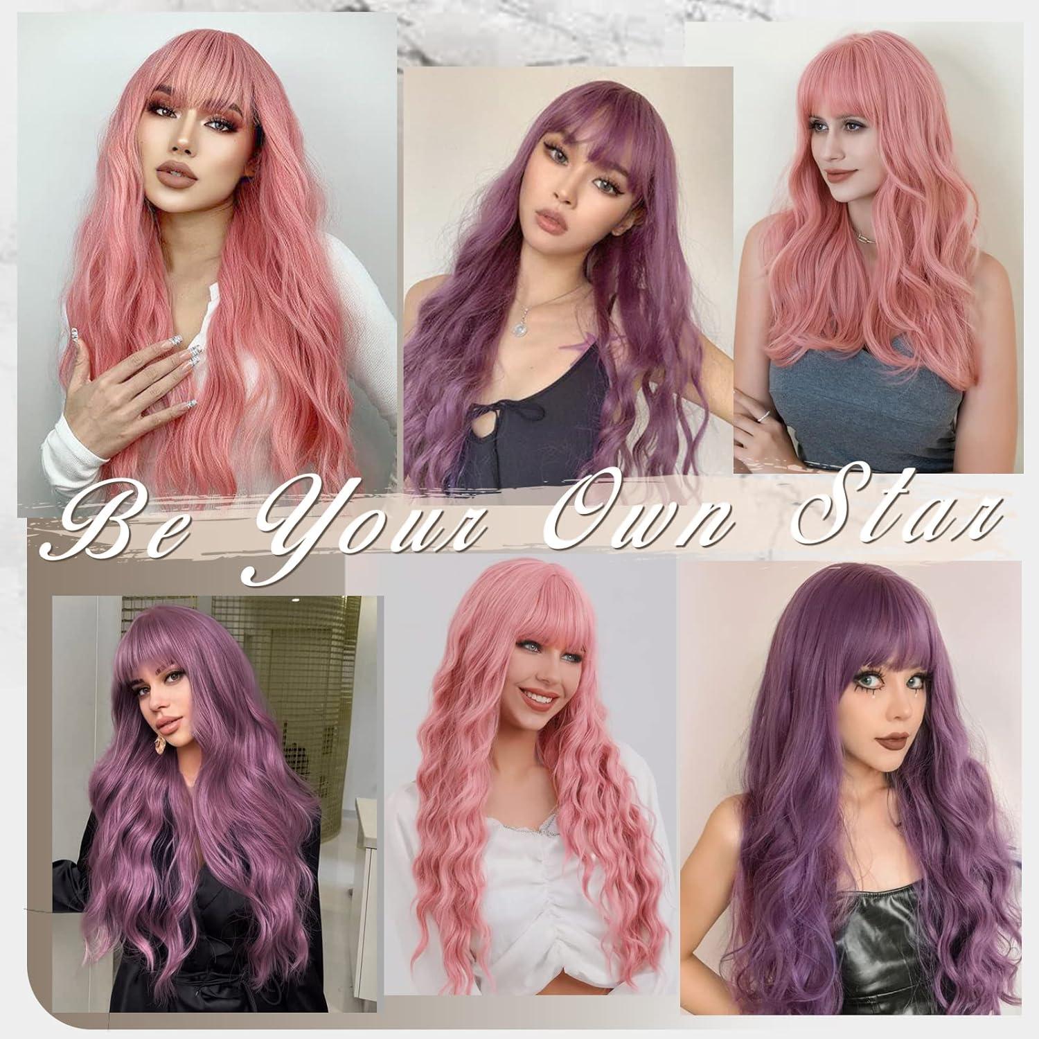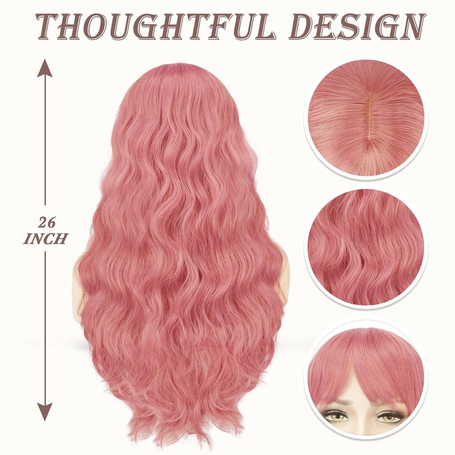 Lange, Gewellte Perücke: Erreichen Sie im Handumdrehen glamouröse, lange Locken mit dieser 66 cm langen, gewellten Perücke in auffälligem Rosa.