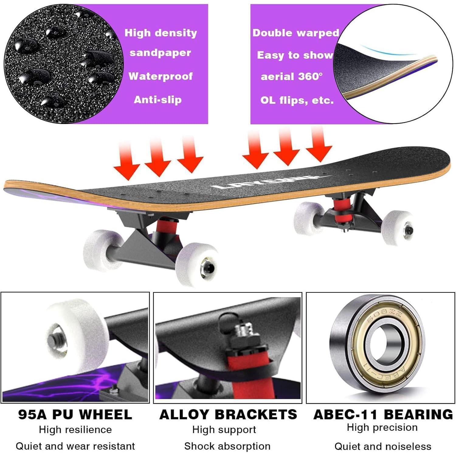 LAYENNE Skateboard 31 Zoll komplett mit ABEC-11 Lager, Ahorn