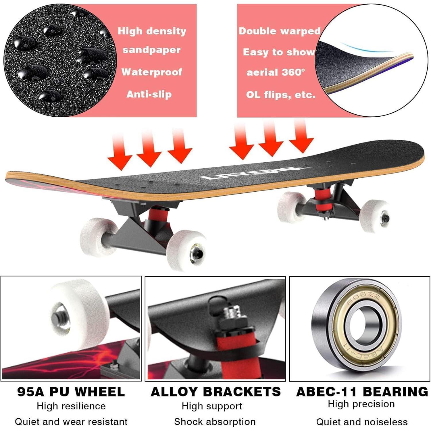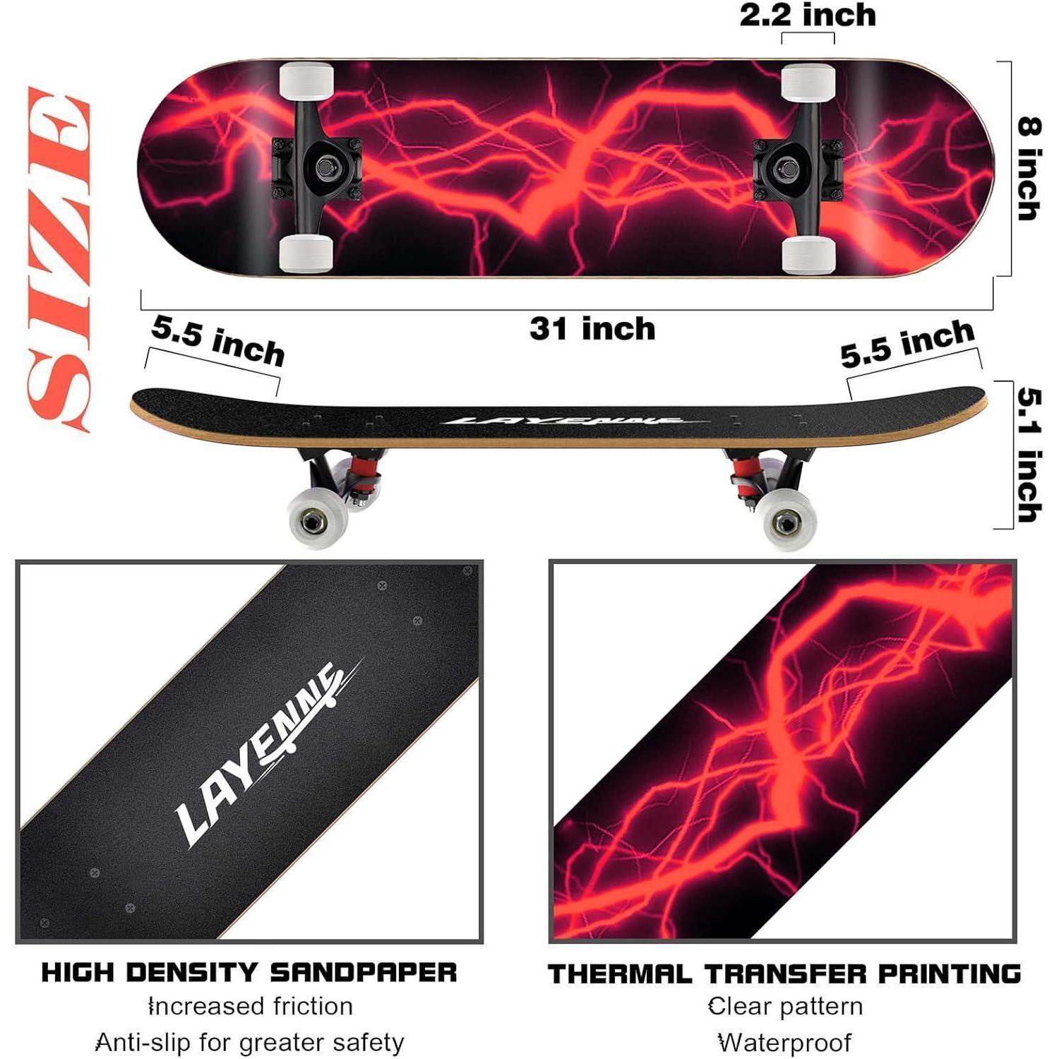 LAYENNE Skateboard 31 Zoll Komplettes Ahorn Deck ABEC-11