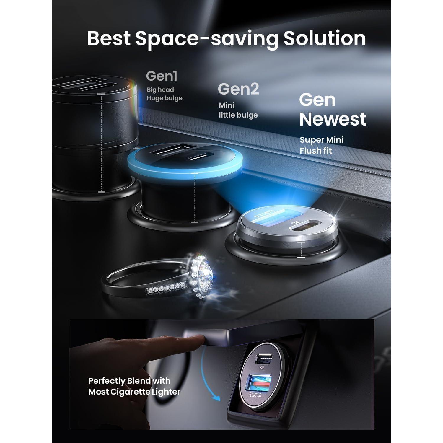 Das mitgelieferte 3,3 Fuß lange Nylon-geflochtene USB C auf C Kabel unterstützt Schnellladung mit bis zu 60W und ist perfekt kompatibel mit allen Android- & USB-C-Geräten. Die vollständig aus Aluminium gefertigte Konstruktion gewährleistet eine sichere Verwendung und verhindert Überhitzung. Mit seiner kompakten Größe passt das Ladegerät perfekt in die meisten Zigarettenanzünder im Auto, ohne hervorzustehen.