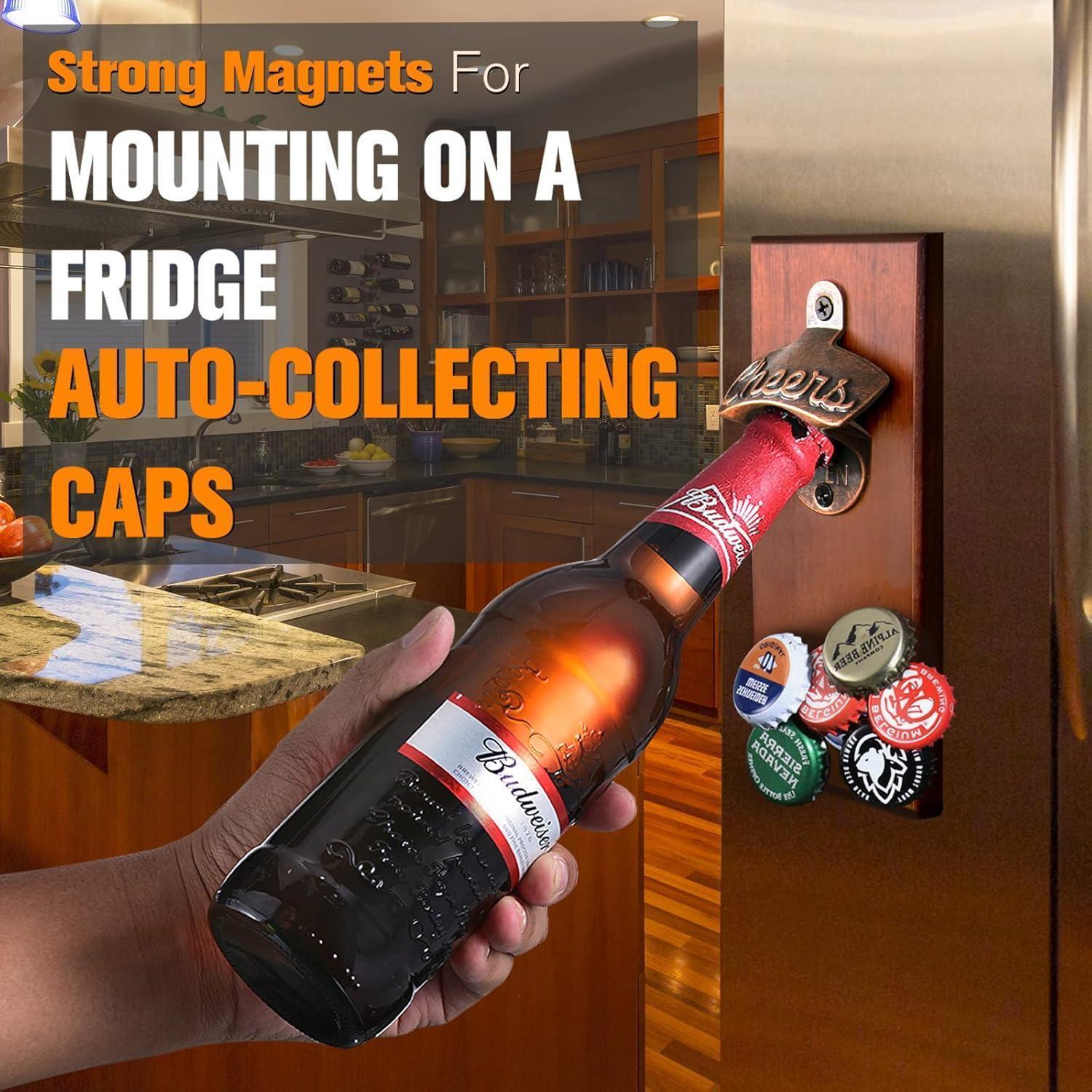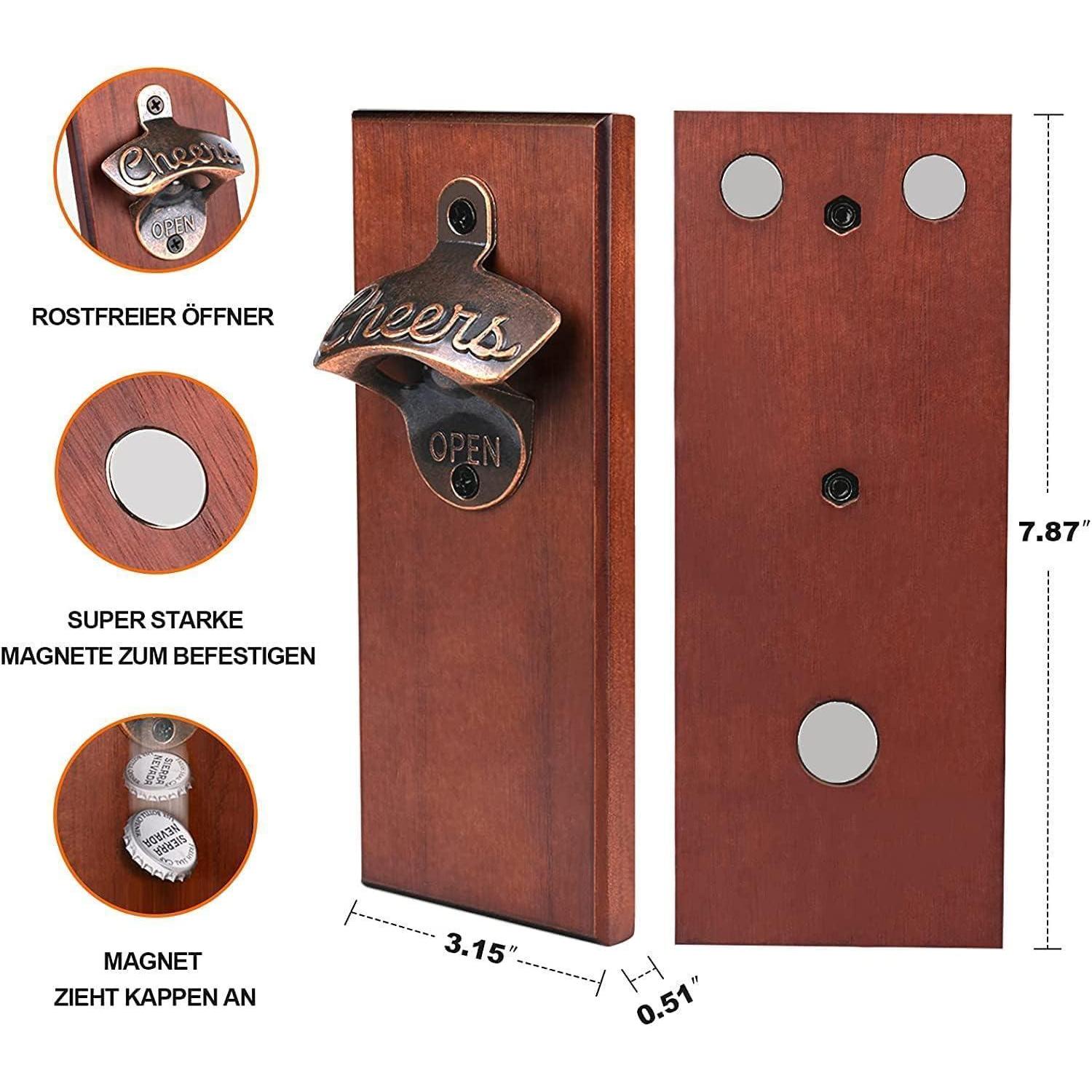 Magnetischer Wand Flaschenöffner aus Holz Kronkorken Fänger