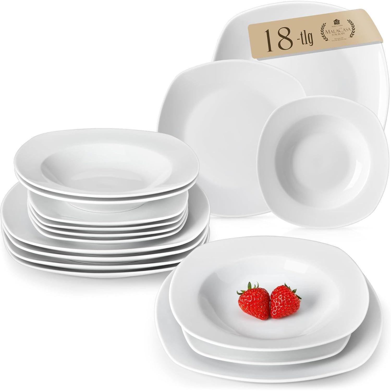 MALACASA Serie Elisa - Ein elegantes 18-teiliges Porzellan Tafelservice Geschirrset, perfekt für 6 Personen