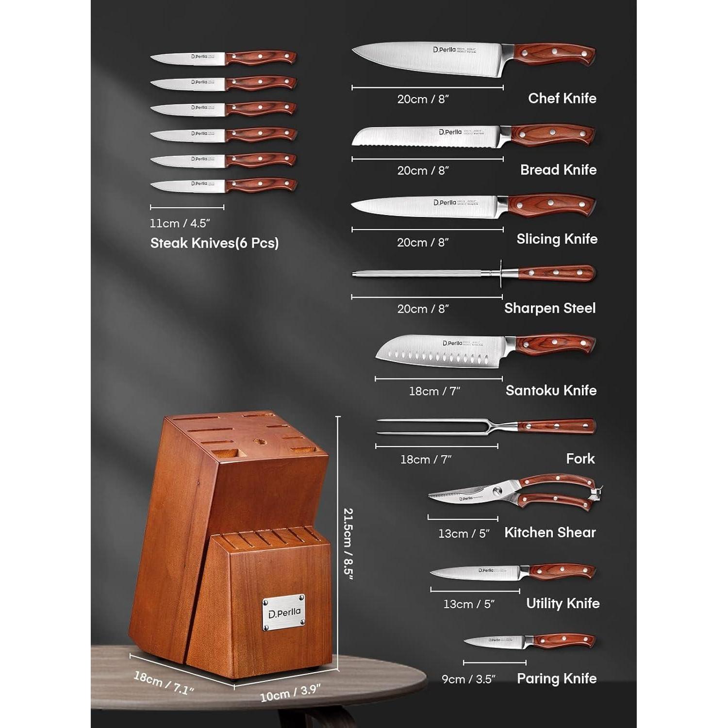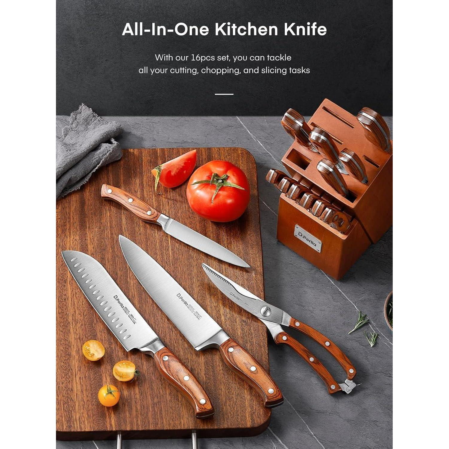 Messerblock Messerset 16-TLG Messer mit Holzgriff Kochmesser