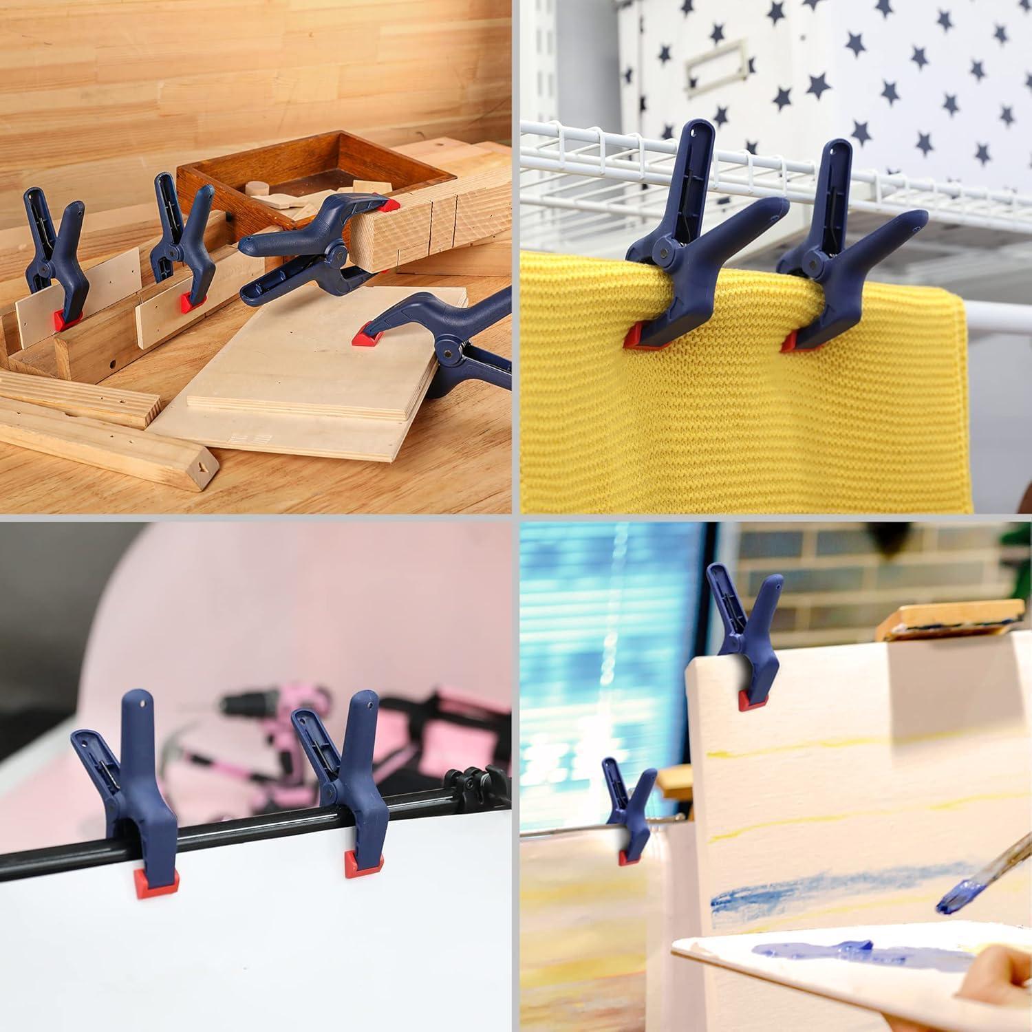 Komplettes Set: Enthält 4 Mini Einhandzwingen, 2 Federklemmen mit 45mm Maulweite und 2 Federklemmen mit 60mm Maulweite
