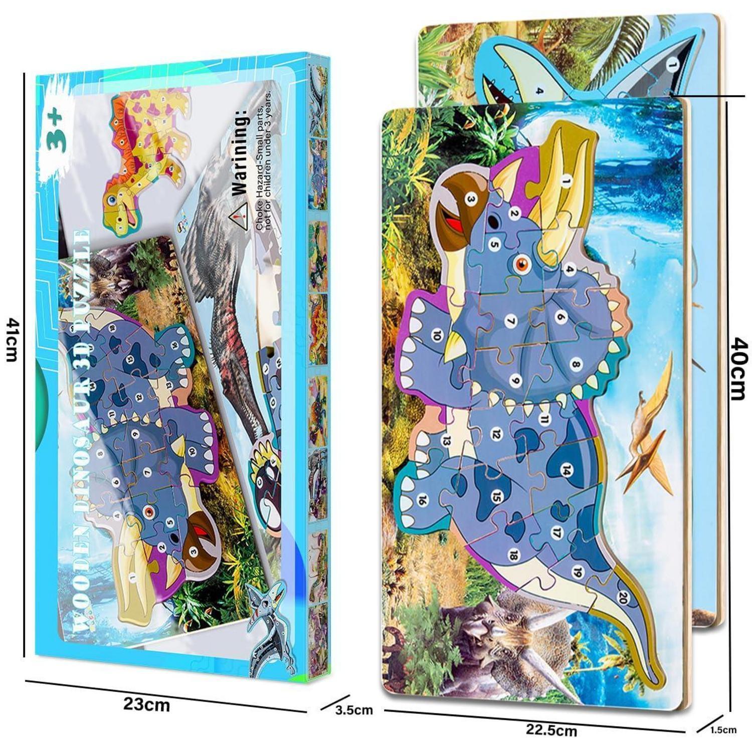 Puzzle 2 3 4 Jahre Dino Puzzle aus 20 Stück Steckpuzzle Holz ab 2 3 4, Montessori Holzpuzzle Spielzeug für Jungen Mädchen (Pteranodon + Triceratops)