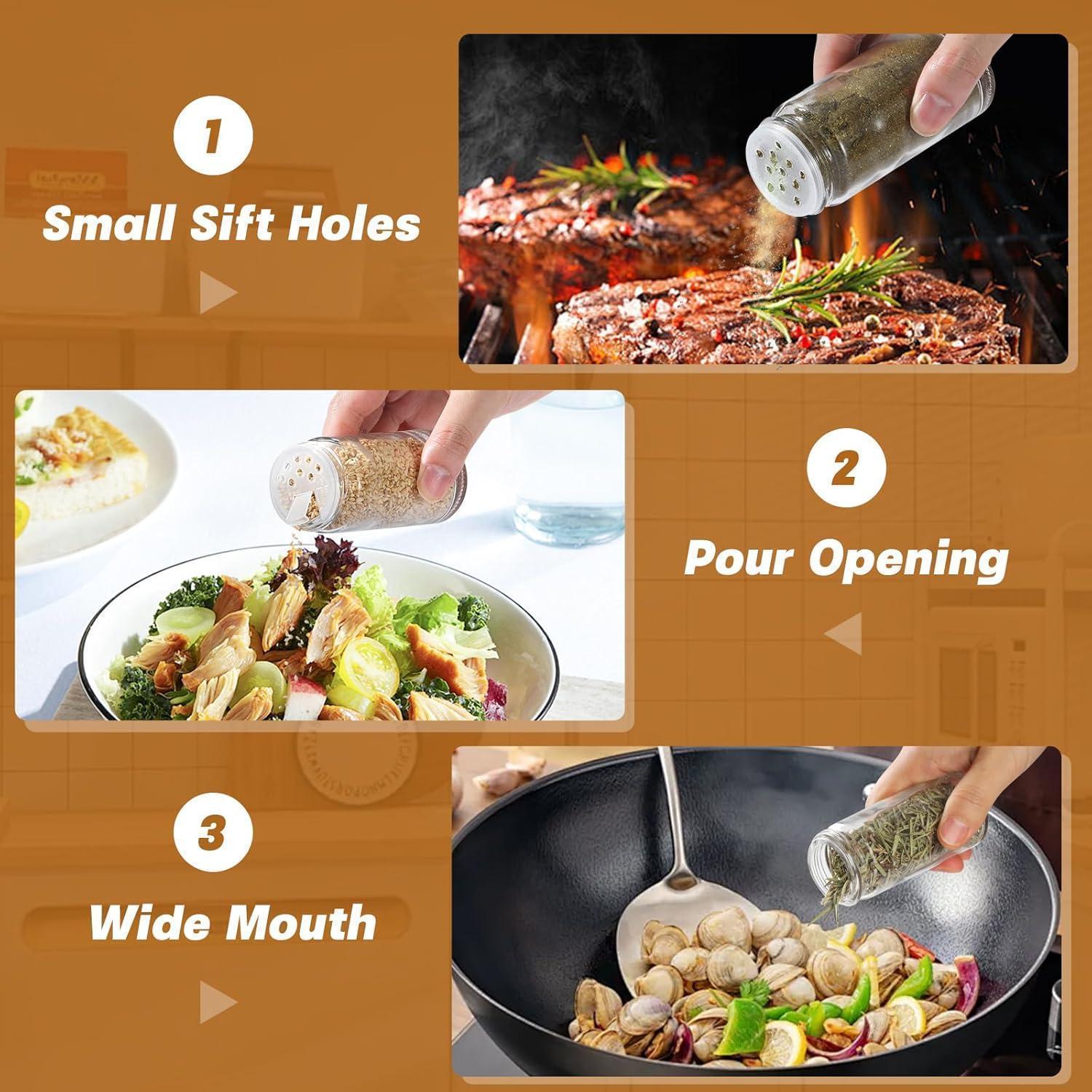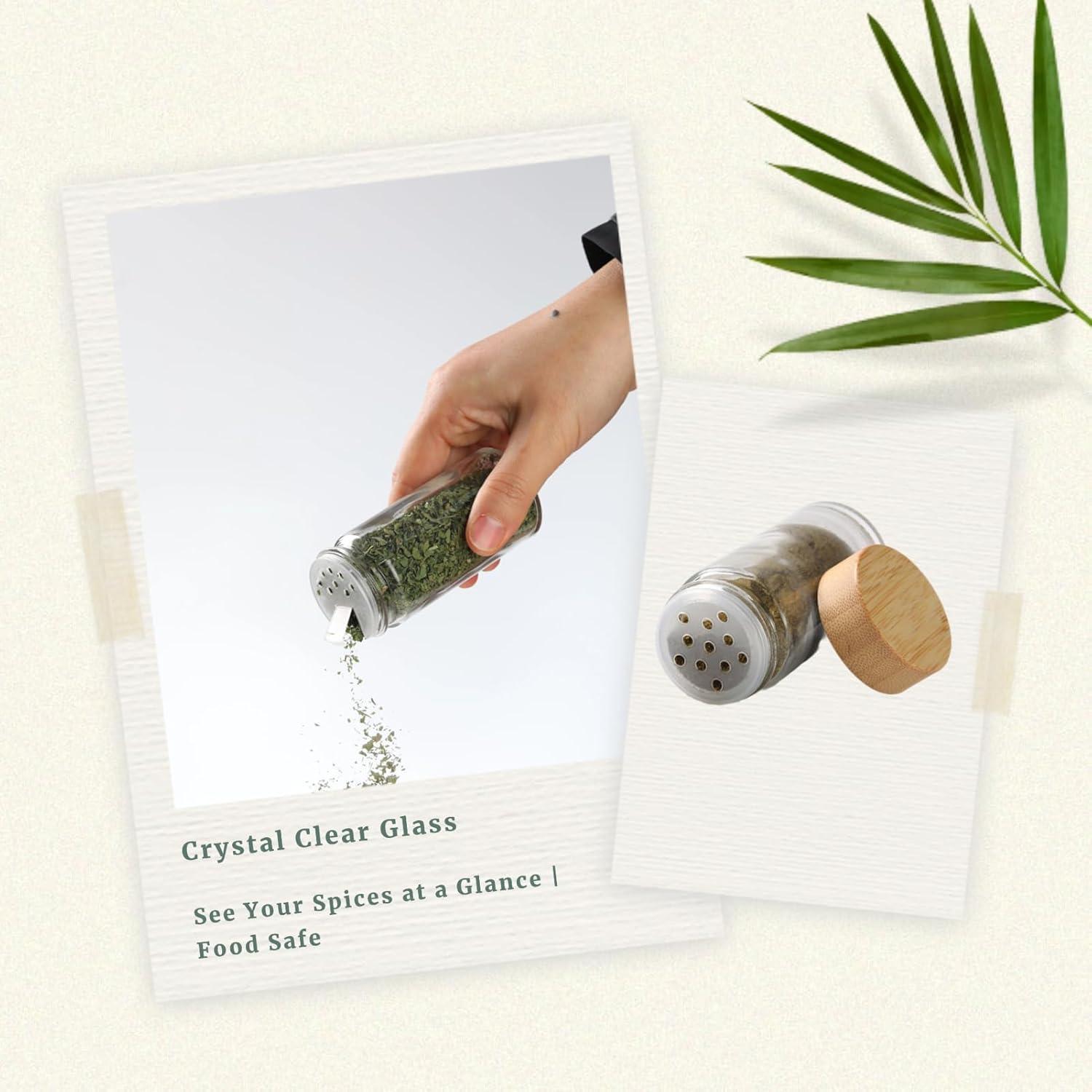Das Bambusholzdeckel-Design bietet eine hervorragende Abdichtung, um die Lagerung Ihrer Gewürze zu optimieren. Das Set beinhaltet auch einen faltbaren Silikontrichter, der das Hinzufügen von Gewürzen erleichtert und ein Verschütten verhindert. Die Reinigungsbürste hilft bei der mühelosen Reinigung der Gewürzgläser, während die Mehrzweckfilter vielseitige Einsatzmöglichkeiten bieten.