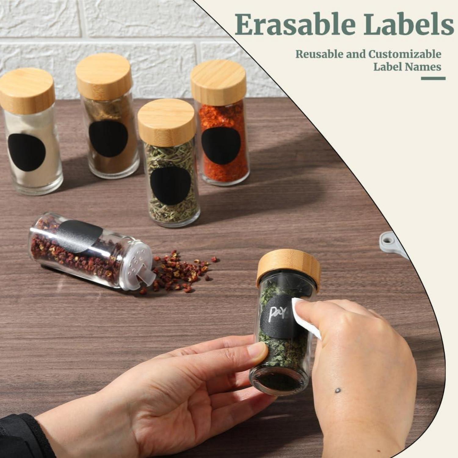 Der luftdichte Verschluss, bestehend aus Bambus und Holz, sorgt dafür, dass Feuchtigkeit, Staub und Insekten ferngehalten werden und Ihre Gewürze frisch und trocken bleiben. Die mitgelieferten Etiketten und der Stift helfen Ihnen dabei, jedes Gewürz klar zu identifizieren und Ihre Küche organisiert zu halten. Die hochwertigen Gewürzgläser aus BPA-freiem Glas sind abriebfest, korrosionsbeständig und leicht zu reinigen.