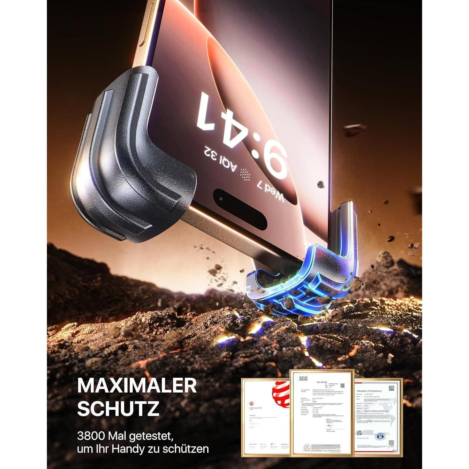 【100% Stoßdämpfung】 Stoßdämpfendes Silikon schützt das Handy vor Stößen und Kratzern. Die präzise Edelstahlstruktur und seitliche Klammern bieten sicheren Halt, selbst bei hohen Geschwindigkeiten.