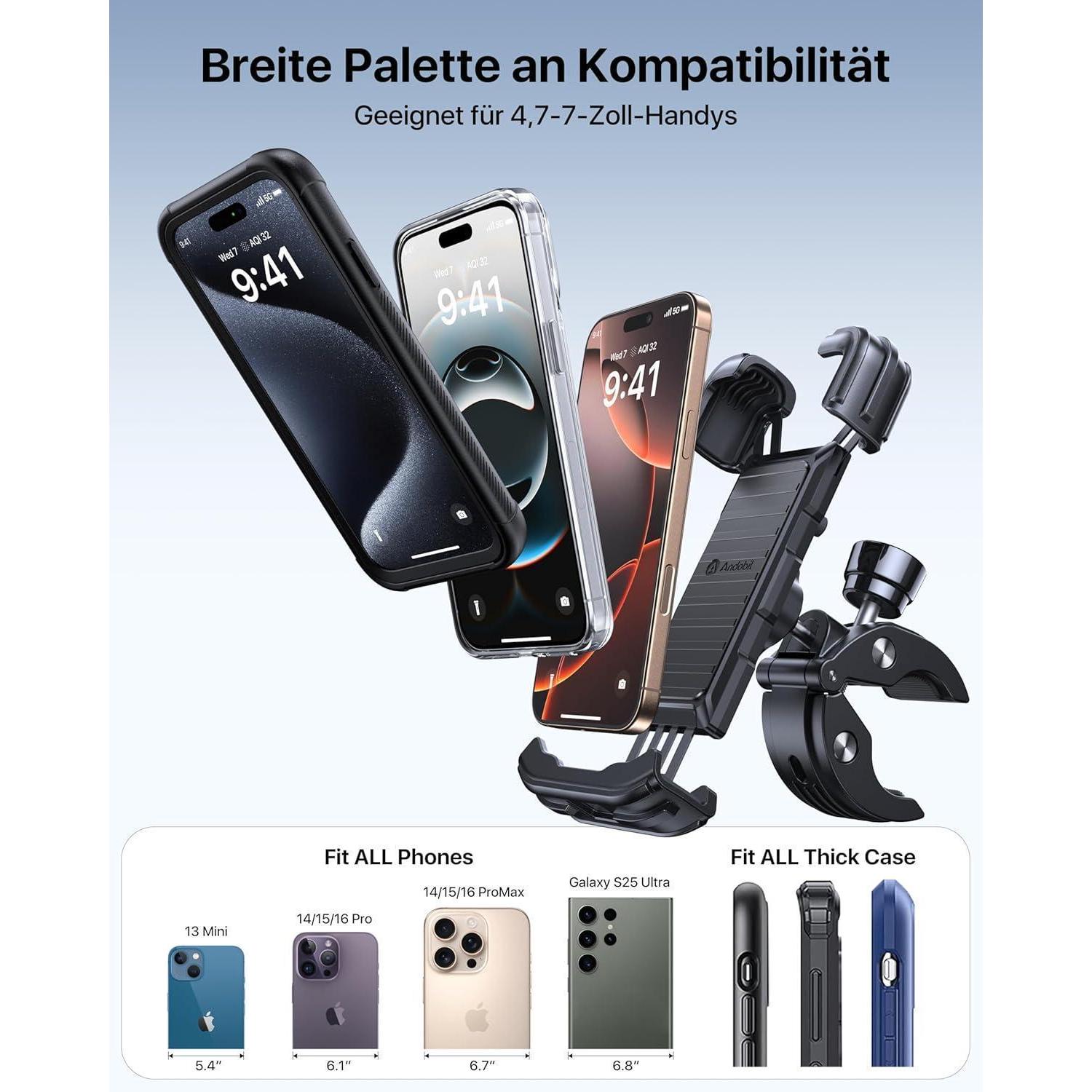 Weite Kompatibilität - Passend für Lenker von 10-45 mm und 4,5-7,0 Zoll Handys wie das Samsung S24 Ultra