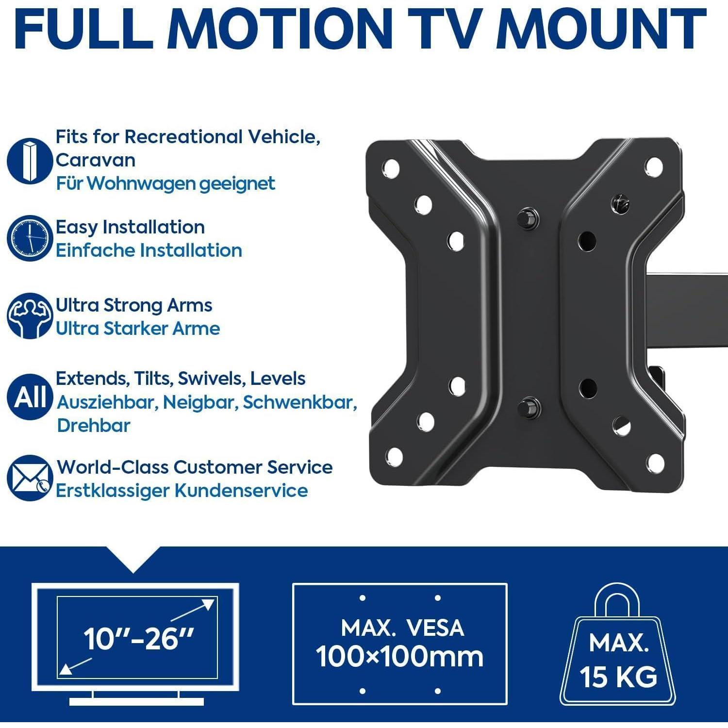 Sie sind auf der Suche nach der idealen TV-Wandhalterung für Ihren Wohnwagen oder Campingwagen? Die Mounting Dream arretierbare TV Halterung ist die perfekte Lösung! Mit VESA 50x50-100x100mm Kompatibilität eignet sie sich für die meisten 10-26 Zoll Fernseher mit einem Gewicht von bis zu 15kg. Durch die arretierbare Funktion ist Ihr Fernseher während der Fahrt sicher und geschützt.