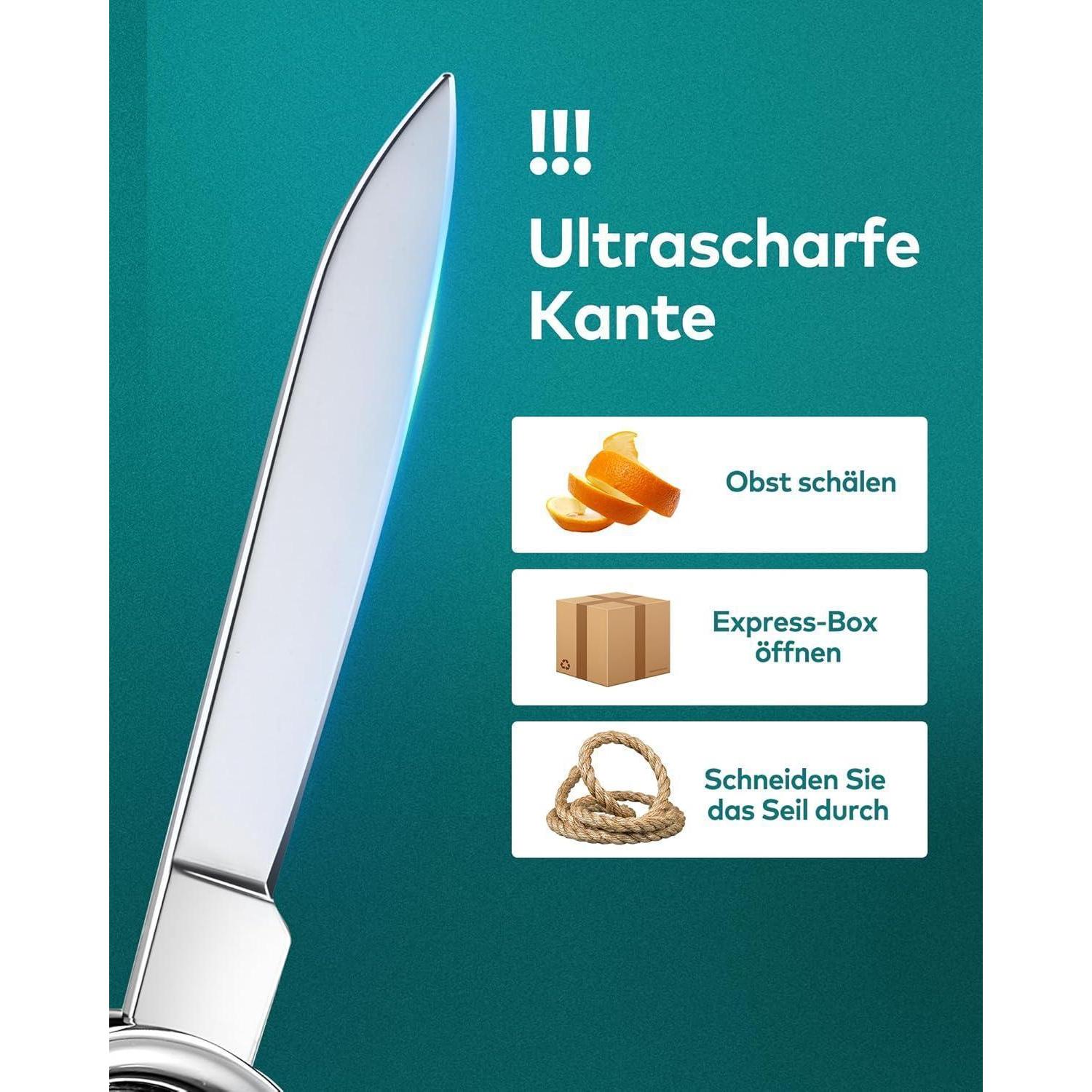 Dank des 6-in-1-Designs vereint dieser Nagelknipser sechs praktische Funktionen in einem Gerät: Nagelknipser, Nagelfeile, Schere, Taschenmesser, Flaschenöffner und Schraubenzieher. Ob beim Camping im Freien, auf Reisen oder für den täglichen Gebrauch zu Hause, dieses Multifunktionswerkzeug ist äußerst praktisch und vielseitig einsetzbar.