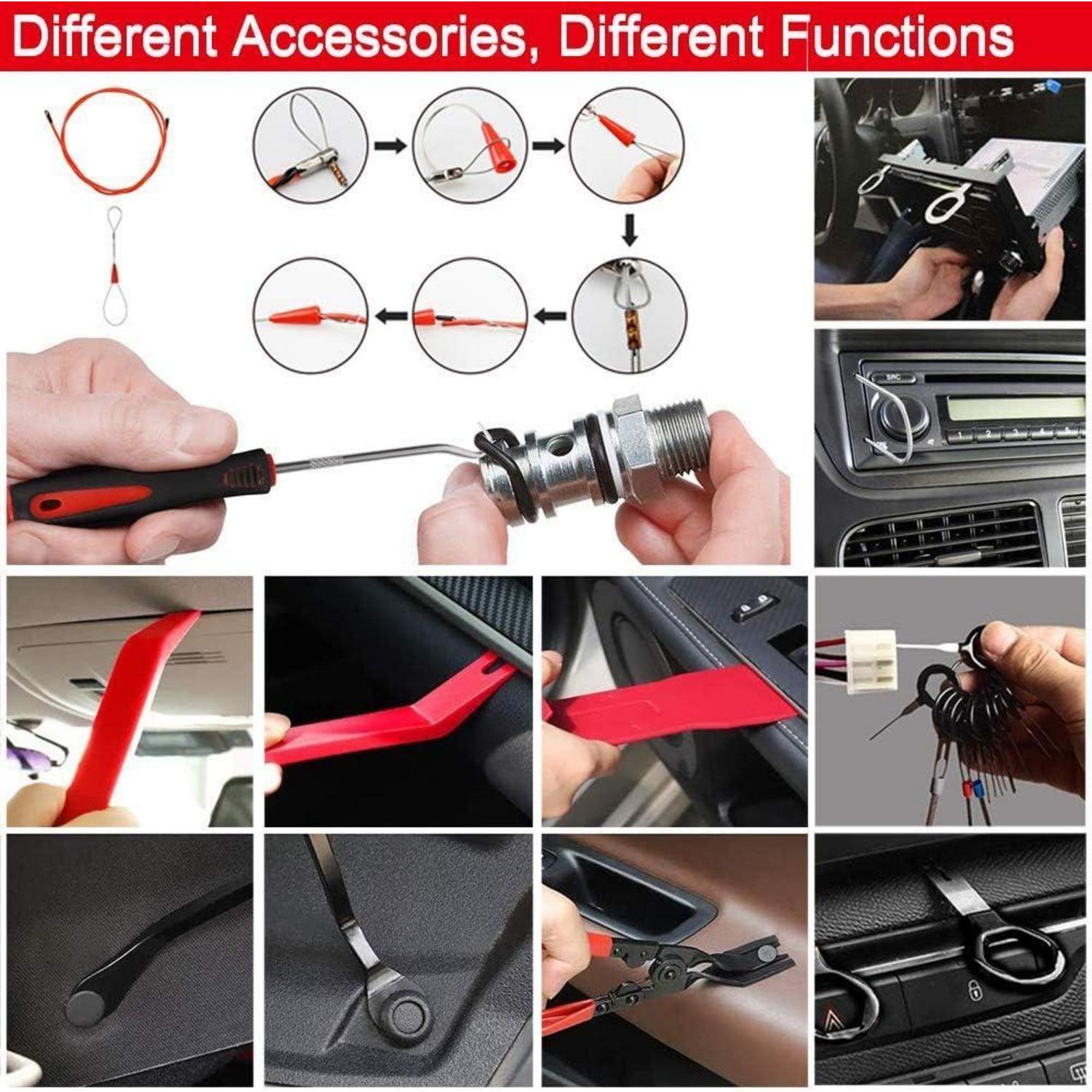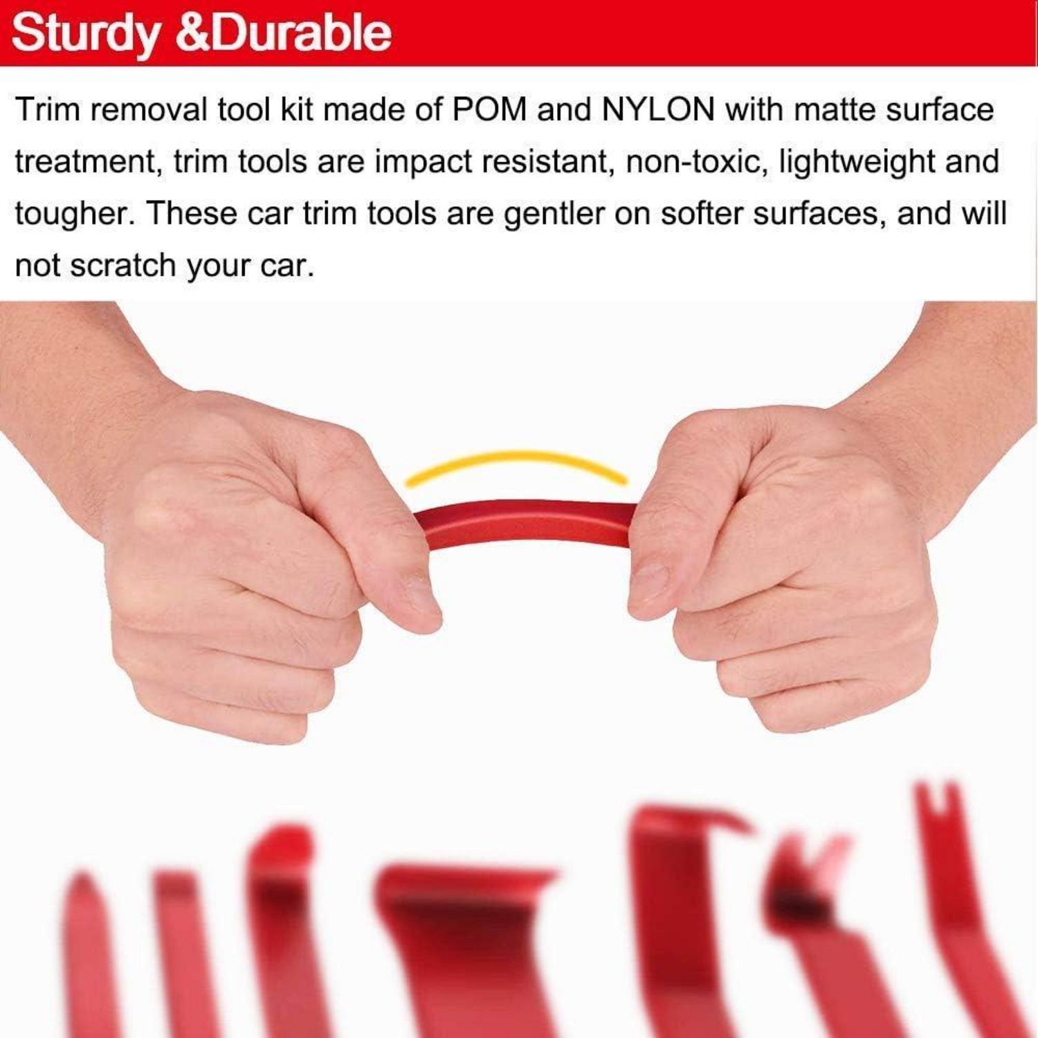Die Werkzeuge sind aus robustem POM + Nylonmaterial gefertigt, das chemikalienbeständig, hitzebeständig und langlebig ist. Das ergonomische Design sorgt für eine leichte Handhabung und ermöglicht den Zugang zu schwer erreichbaren Stellen. Egal ob es um die Demontage von Verkleidungsteilen, Schraubenklammern oder Zubehör am Fahrzeug geht, mit diesem Werkzeugset wird die Arbeit einfacher und effizienter.