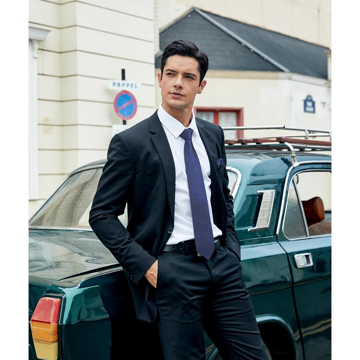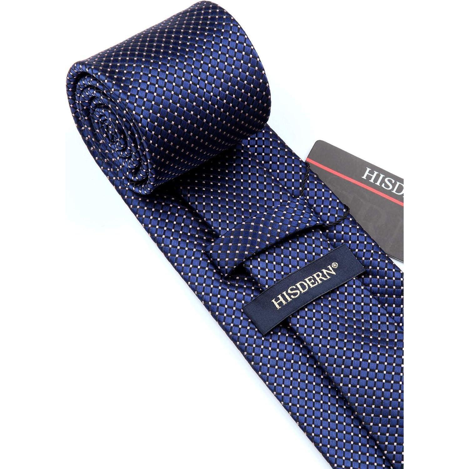 Navy Blue Check Plaid Extra Long Tie and Handkerchief Set
