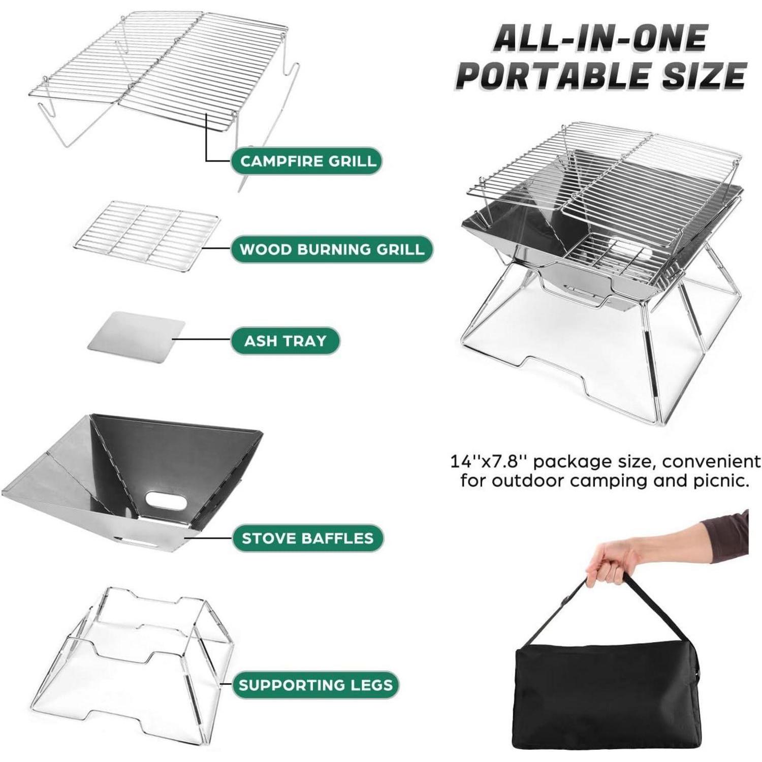 Odoland Tragbarer BBQ Campinggrill Feuerstelle 304 Edelstahl