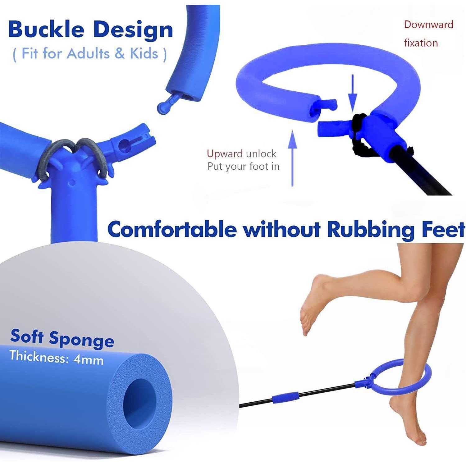 Um den Springring zu nutzen, wird der Schwanzring an einem Fuß angebracht und dann vorwärts oder rückwärts gedreht. Nachdem die Stange zum anderen Fuß gewechselt wurde, können Kinder mit beiden Füßen in die Pedale treten. Dieses Hüpfballspielzeug bietet nicht nur Unterhaltung, sondern hilft auch dabei, die körperliche Fitness zu verbessern.