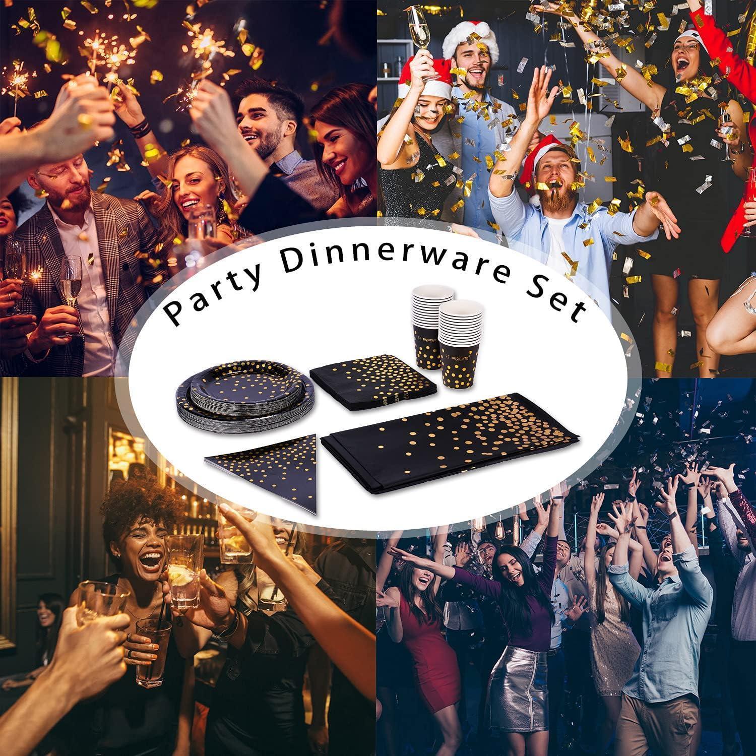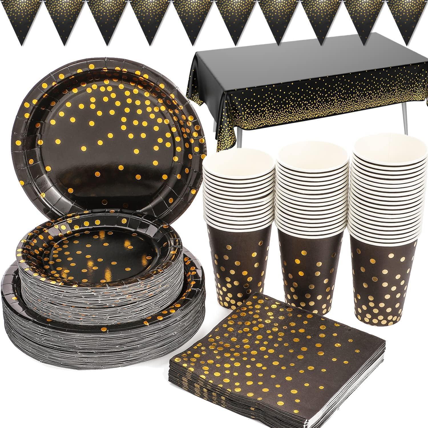 Party Deko Partygeschirr Schwarz Gold 99 Stück Teller Set