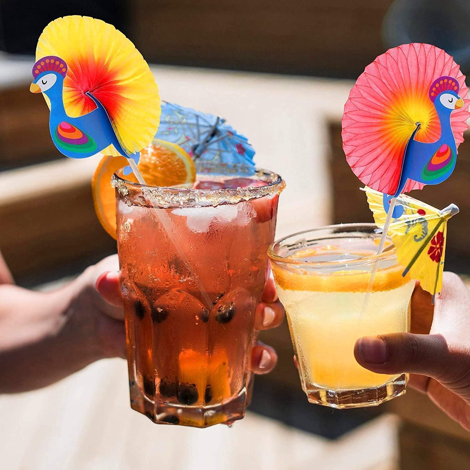 Party Zubehör Cocktail Deko Sticks 100 Stück Papier Pfau