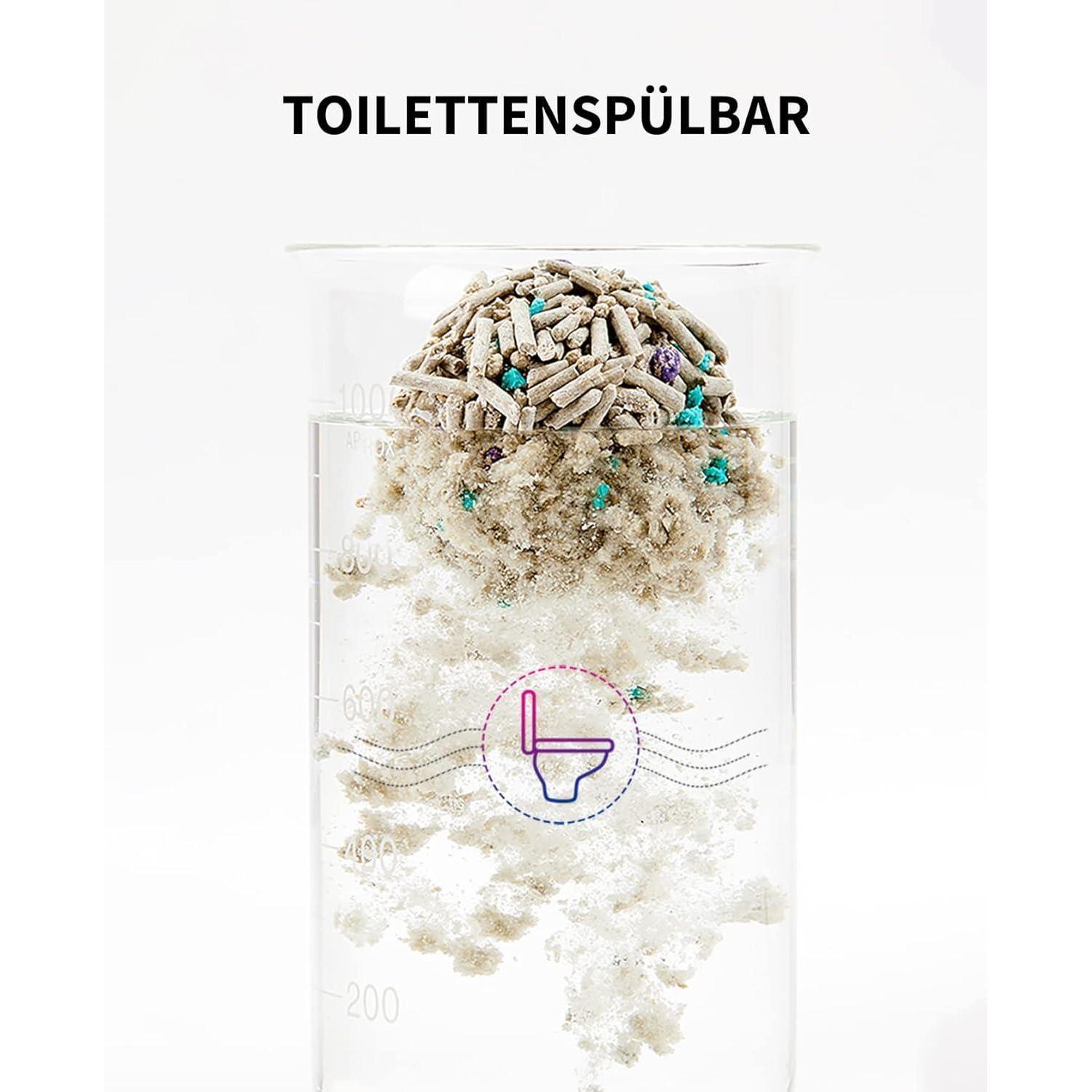 Die feste Textur dieses Streus minimiert Staub und sorgt dafür, dass Ihr Zuhause sauber bleibt. Dank seiner Fähigkeit, schnell zu klumpen und leicht zu entfernen, sparen Sie Zeit und Mühe bei der Reinigung der Katzentoilette. Darüber hinaus ist dieses Streu wasserlöslich und kann ausgespült werden, was die Reinigung noch einfacher macht.