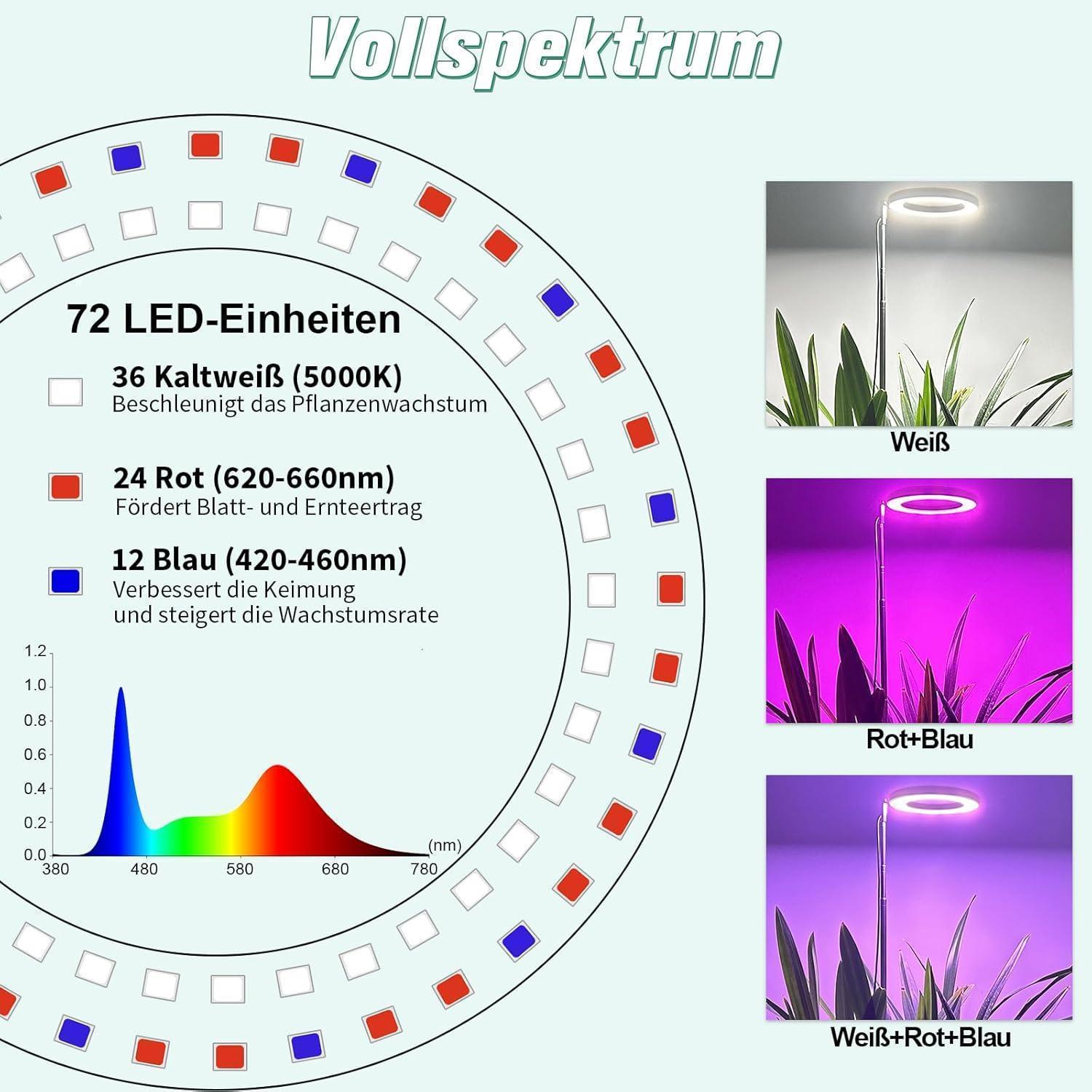 Pflanzenlampe LED Vollspektrum Grow Lampe 3 Modi Timer