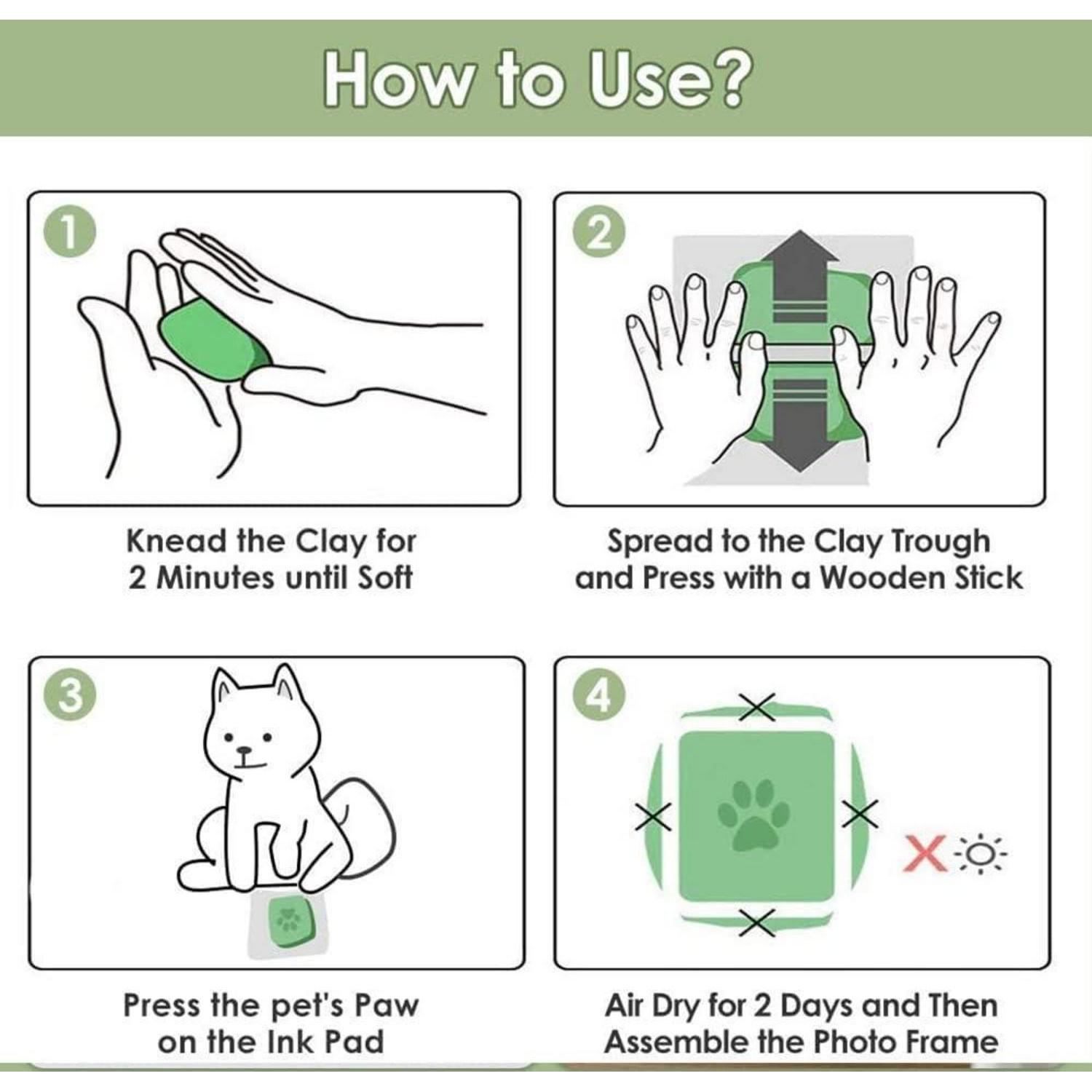 Pfotenabdruck Set 3D Gipsabdruck Holz Bilderrahmen Weiß