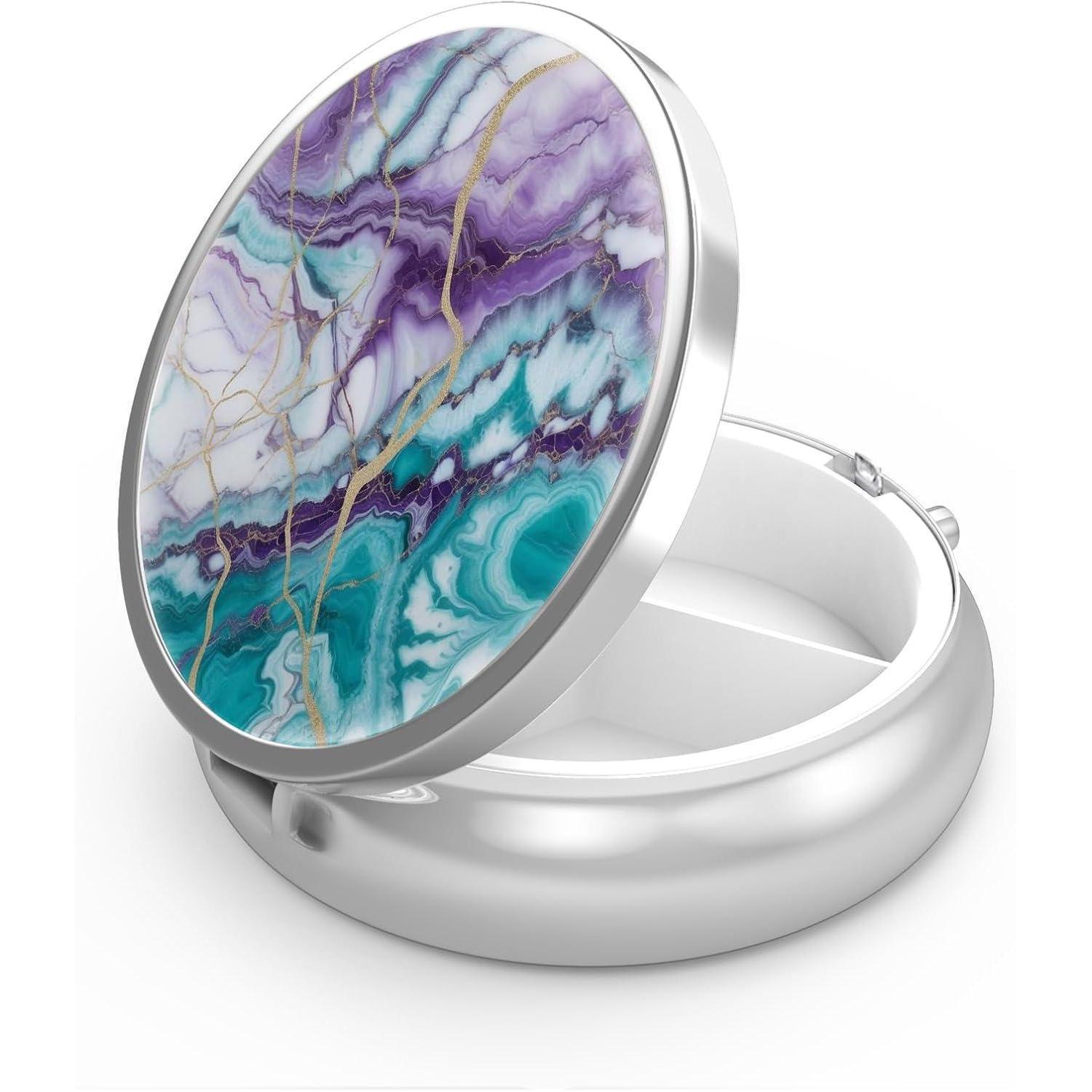 Die Pillendose mit 3 Fächern ist ein praktischer und dekorativer Organizer für Ihre Medikamente und Vitamine. Das einzigartige lila-weiße Marmormuster verleiht der Pillendose einen eleganten Look und macht sie zu einem idealen Geschenk für Familie und Freunde.