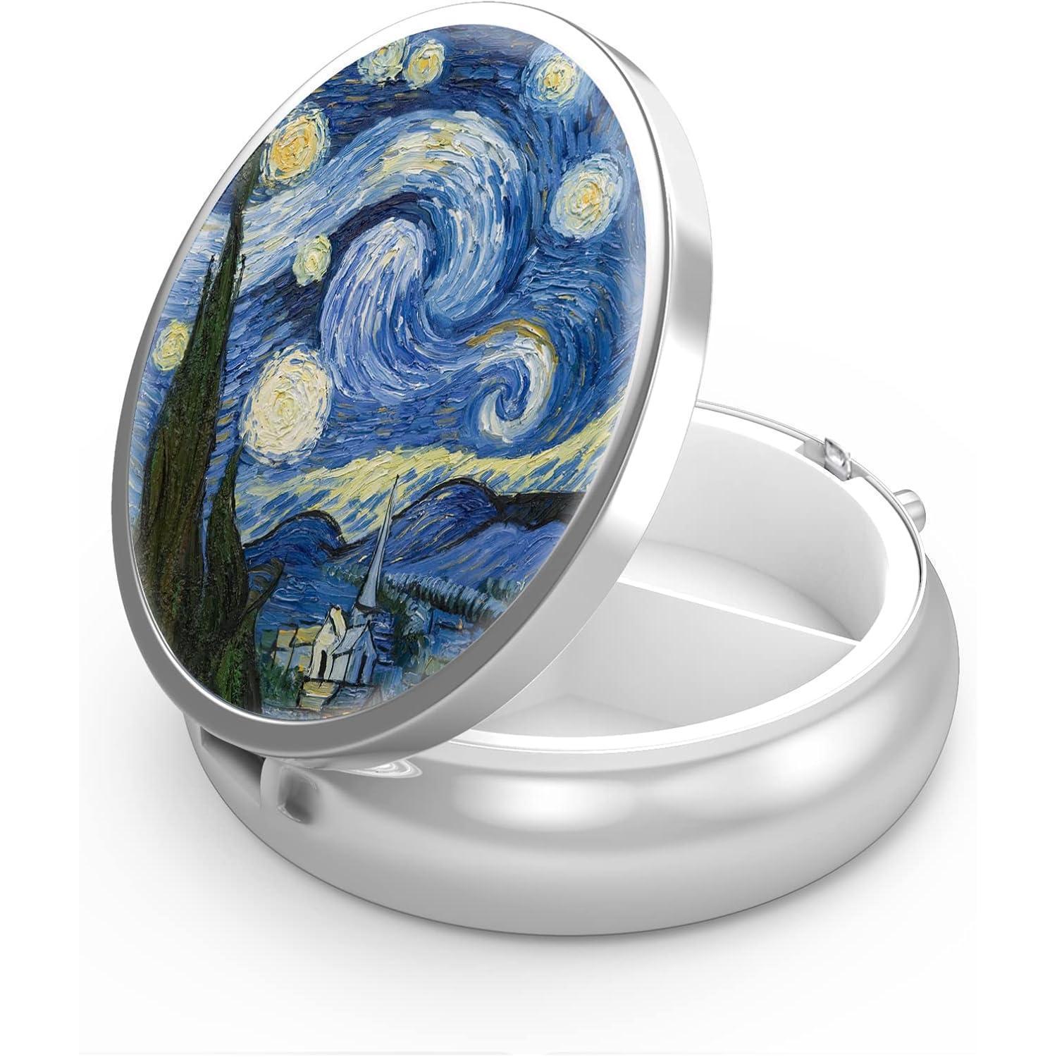 Einzigartiges Geschenk - Dekorative Metall Pillendose mit Kunstmusterdesign (Van Gogh Sternennacht)