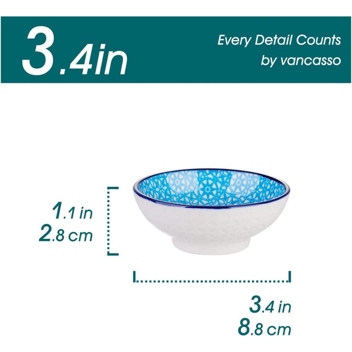 Das 8-teilige vancasso Dipschälchen Set umfasst Schälchen in verschiedenen Farben und Mustern mit einer Füllmenge von 70ml und den Maßen 8,2 x 8,2 x 2,8 cm. Jedes Schälchen ist sicher und robust verpackt, um eine unversehrte Lieferung zu gewährleisten.