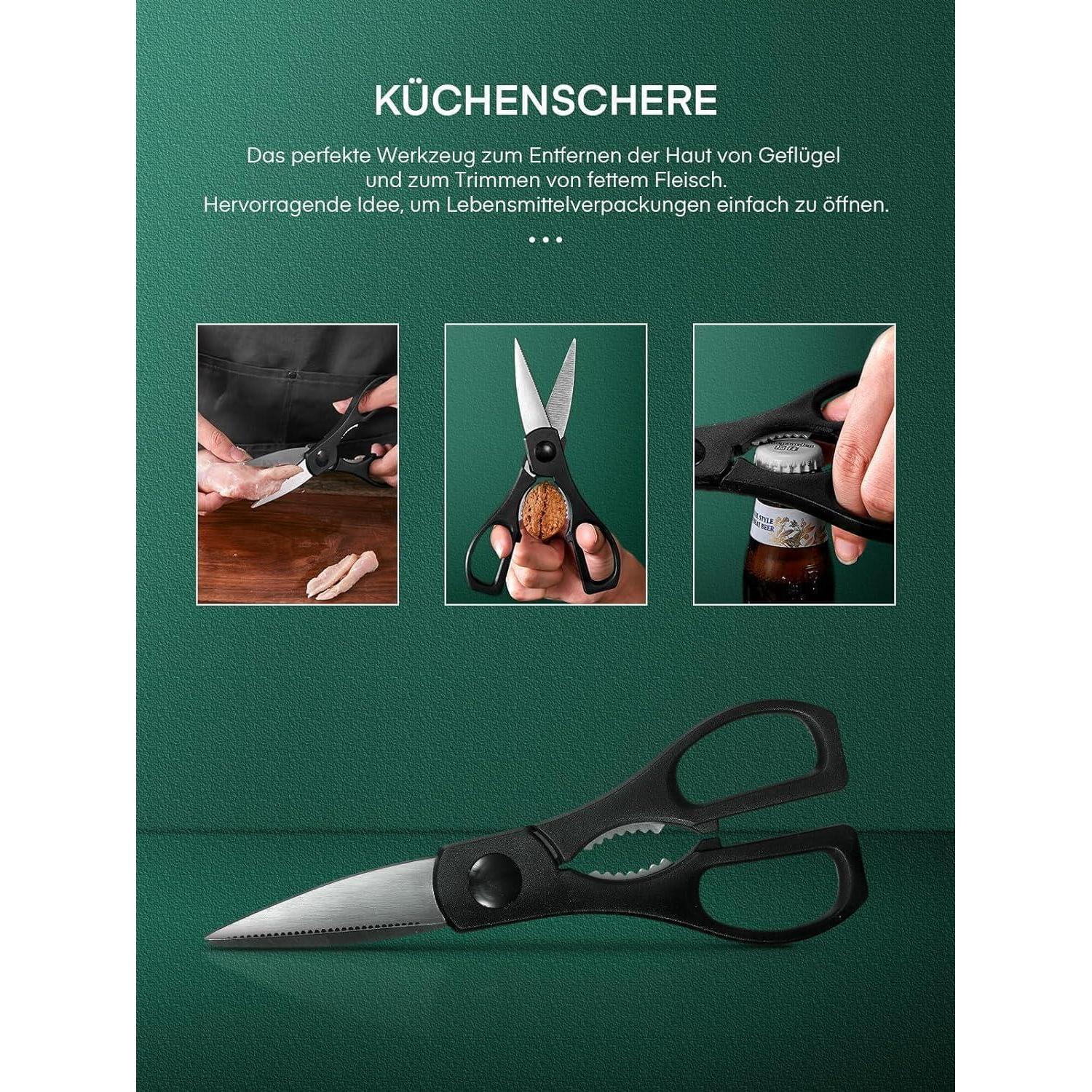 Küchenmesser set - Praktisches Set für jeden Küchenbedarf: Enthält verschiedene Messertypen wie Kochmesser, Fleischmesser, Brotmesser, Santoku Messer, Steakmesser und mehr.