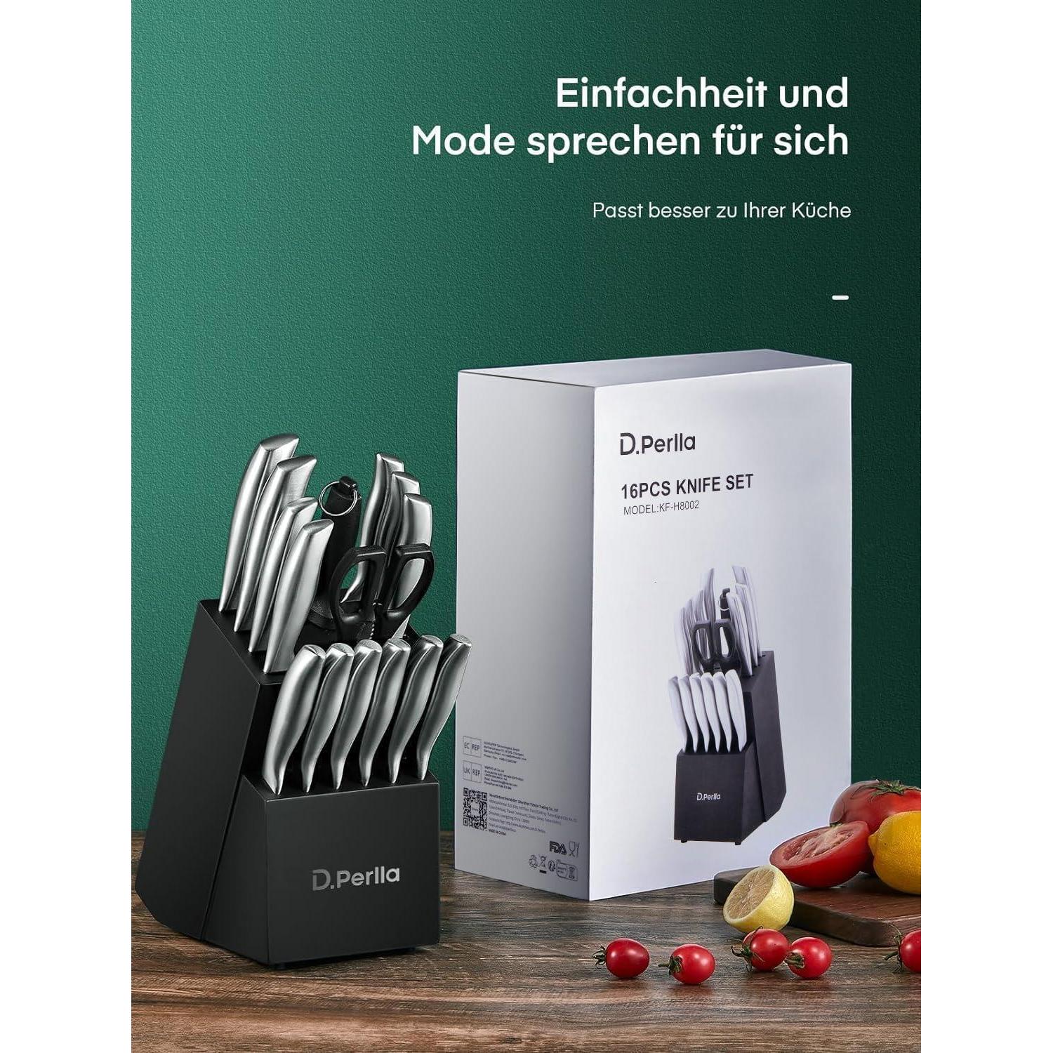 messerblock - Der D.Perlla Messerblock bietet ein 16-teiliges Profi Messer Set, das extra scharfe Klingen und einen ergonomischen Messerblock umfasst.
