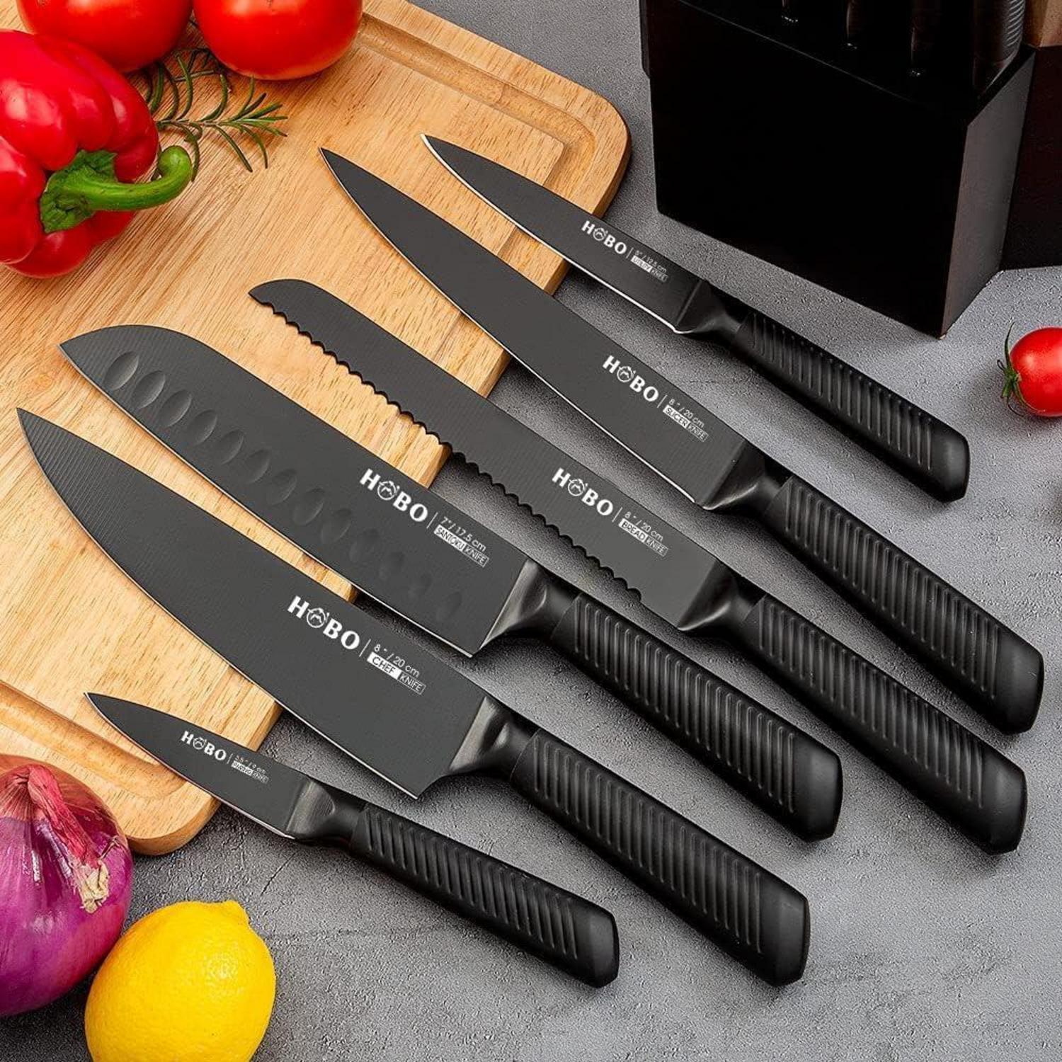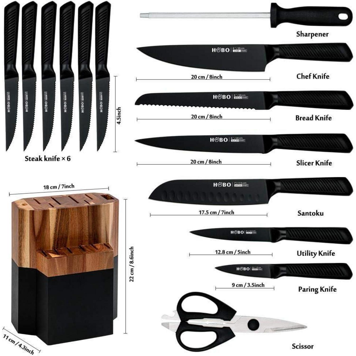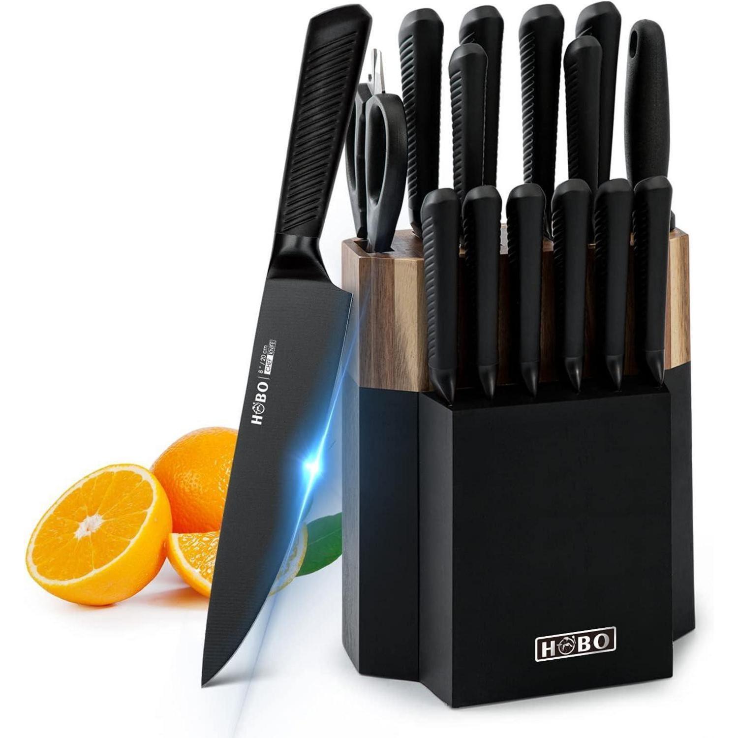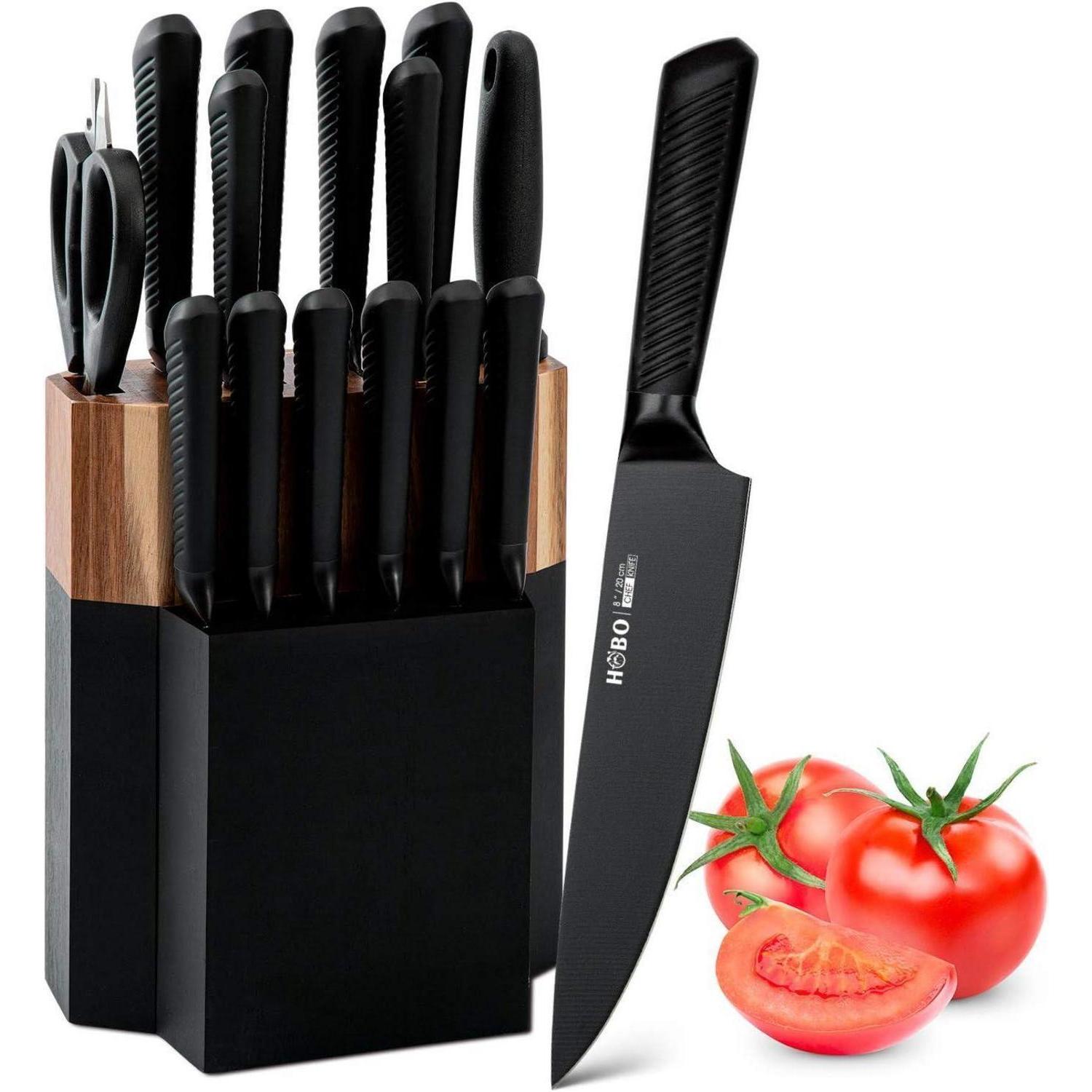 Premium Messerblock mit Messer Schwarz 15 tlg Küchenmesser