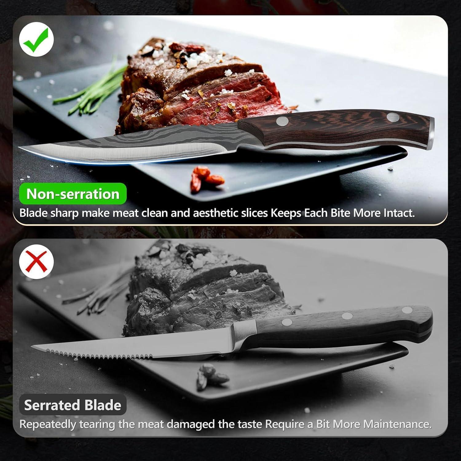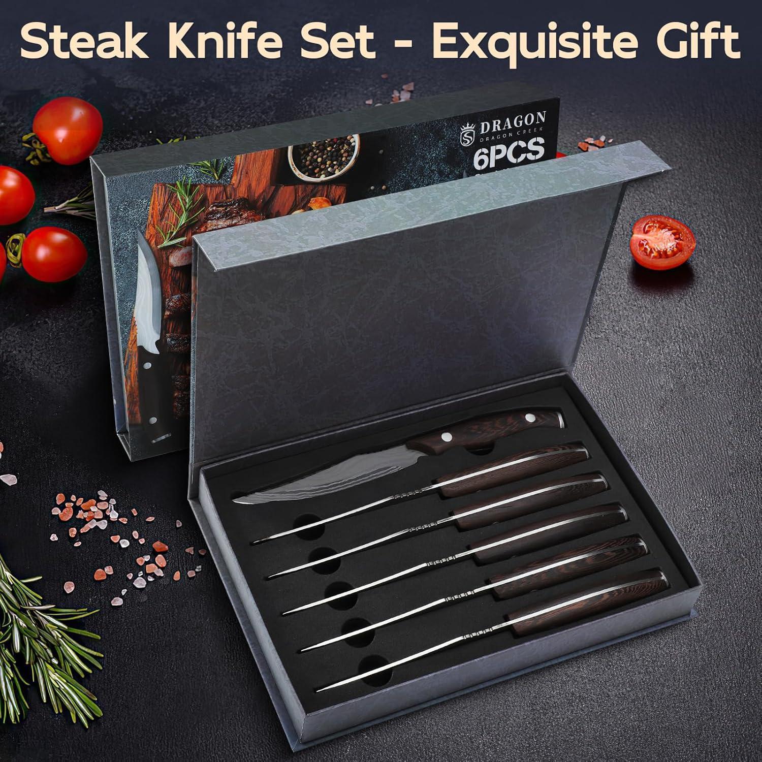 Premium Steakmesser Set 6 teilig mit Holzgriff Grillbesteck