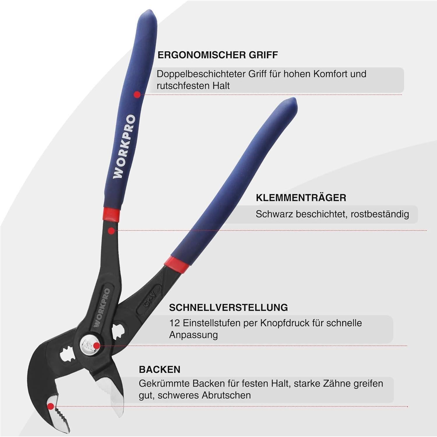 Profi Wasserpumpenzange 305mm Cr-V Stahl verstellbar
