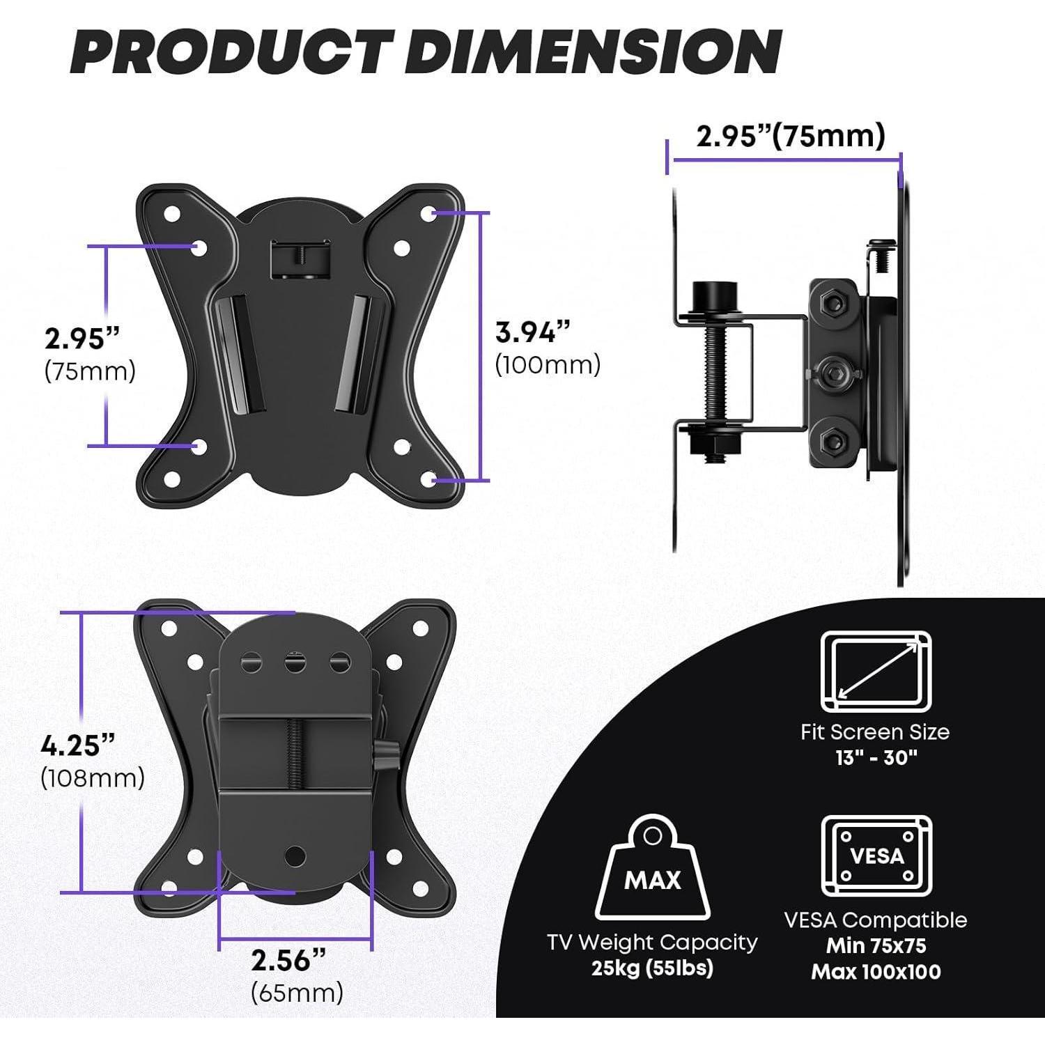PUTORSEN TV Wandhalterung 13-32 Zoll Schwenkbar Neigbar bis