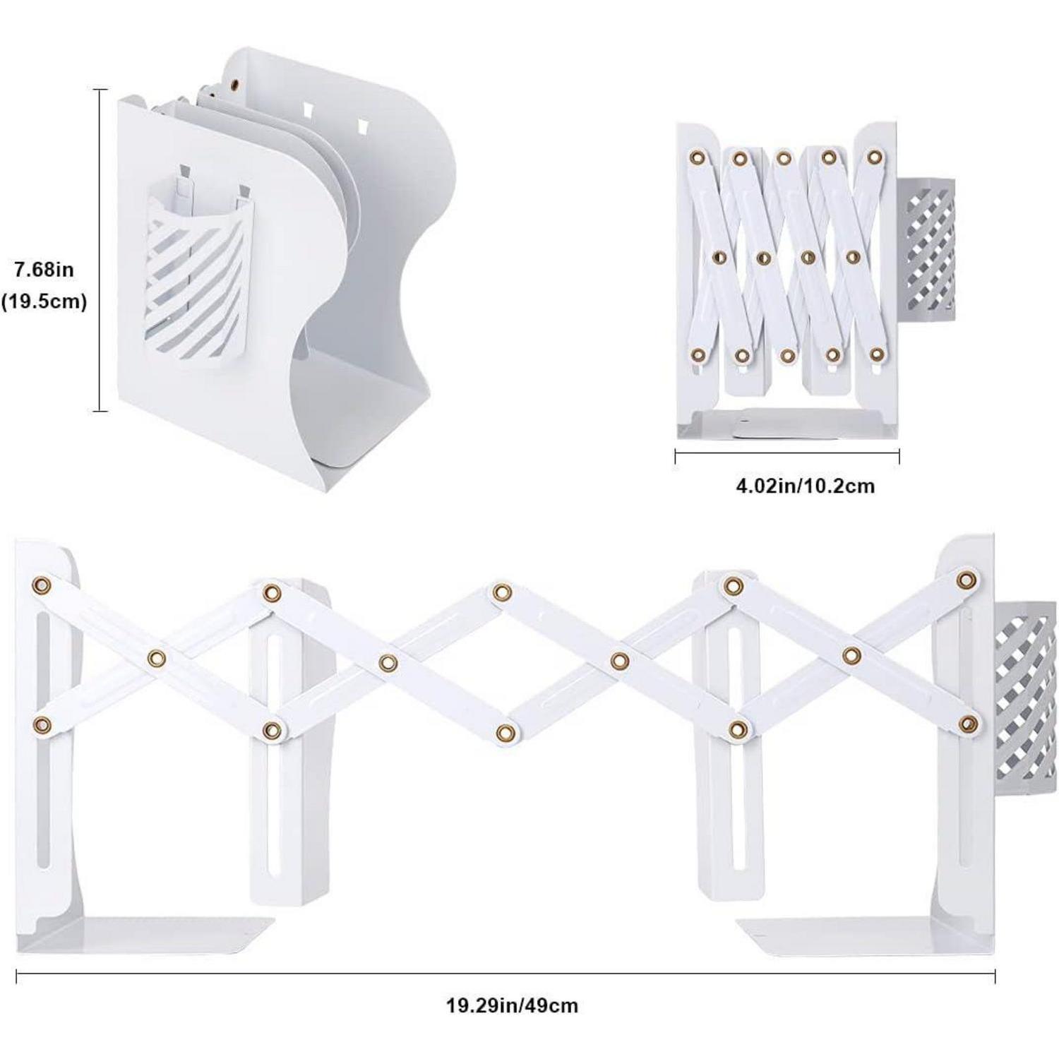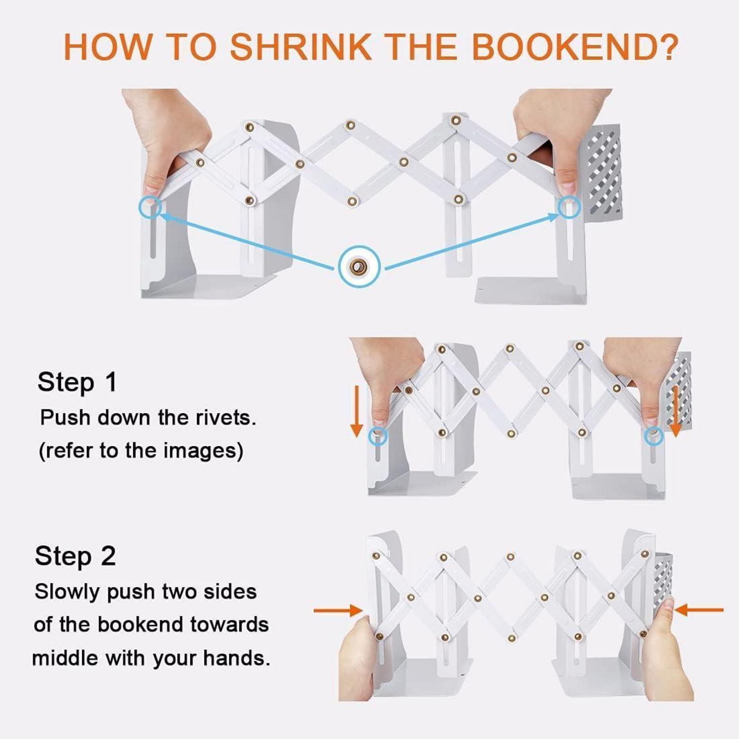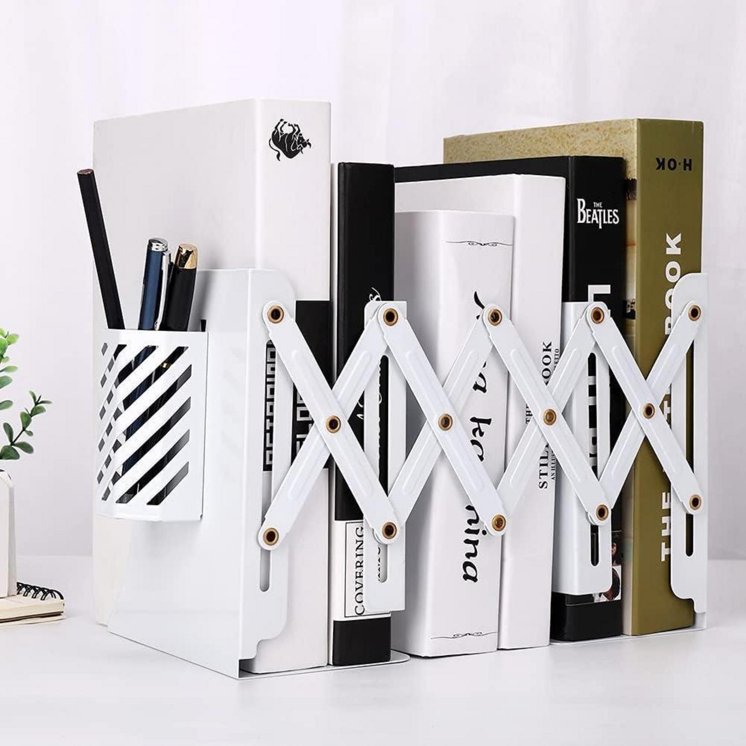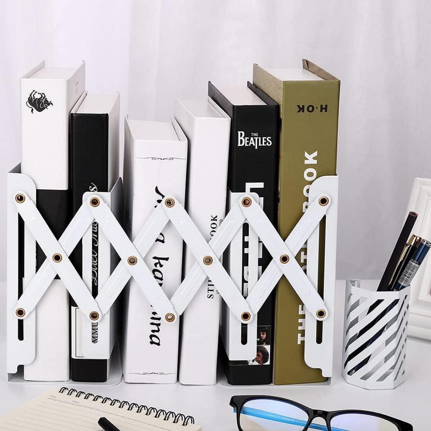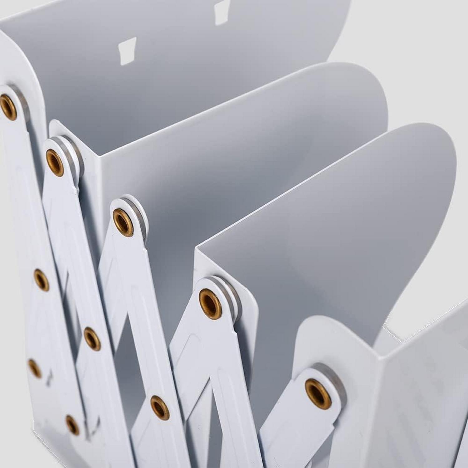 Diese Buchstützen können Zeitschriften, Bücher, DVDs, Spiele, Kataloge, Enzyklopädien, Lehrbücher, gebundene Bücher, Comics, Flipcharts, Kochbücher, Nachschlagewerke, Familienalben und vieles mehr sicher aufnehmen. Dank des verstellbaren Designs können sie je nach Bedarf von 10 cm bis 50 cm eingestellt werden. Die drei vertikalen Fächer ermöglichen eine geordnete Aufbewahrung verschiedener Artikel.