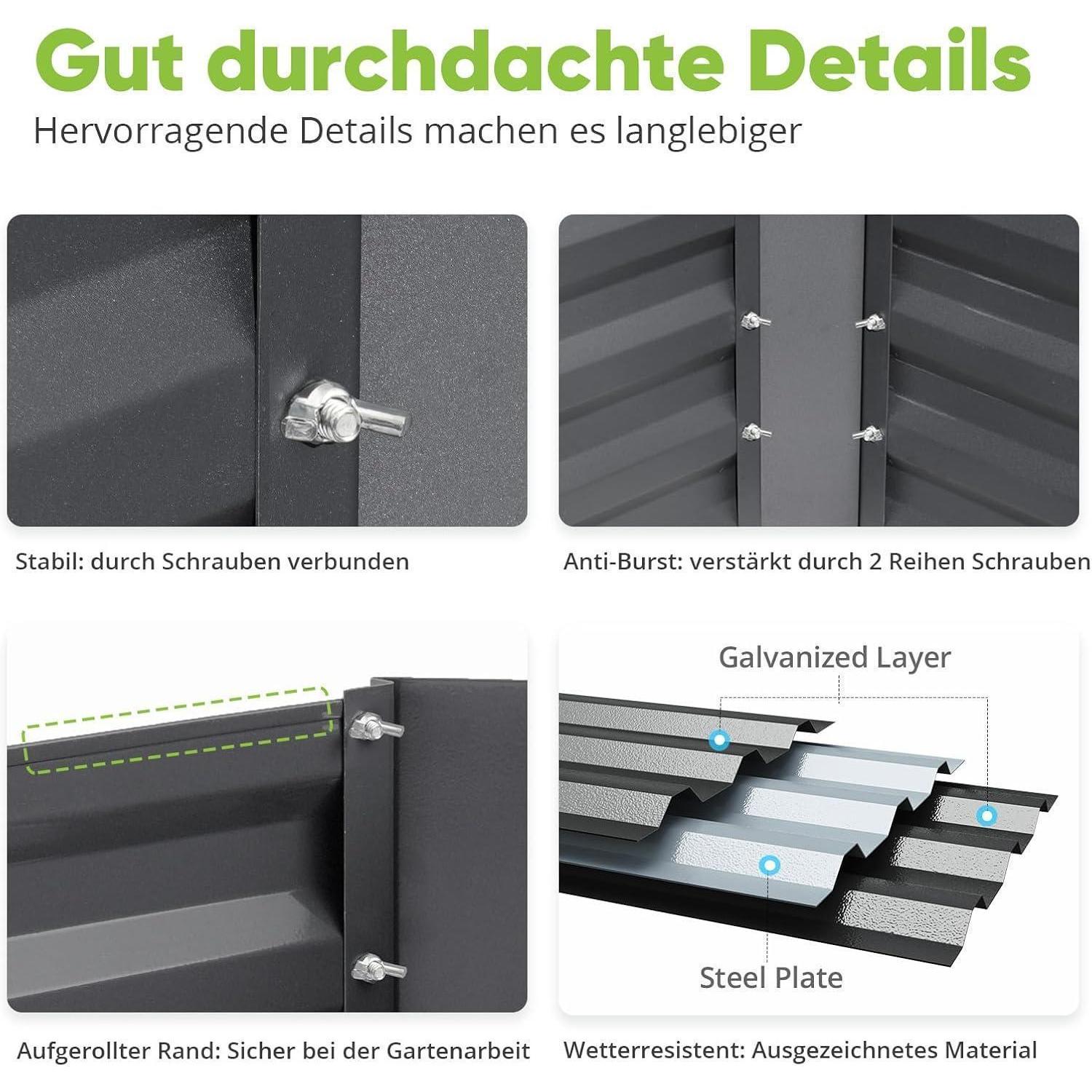 Quictent Hochbeet Pflanzkasten 180x90x56cm Metall Grau