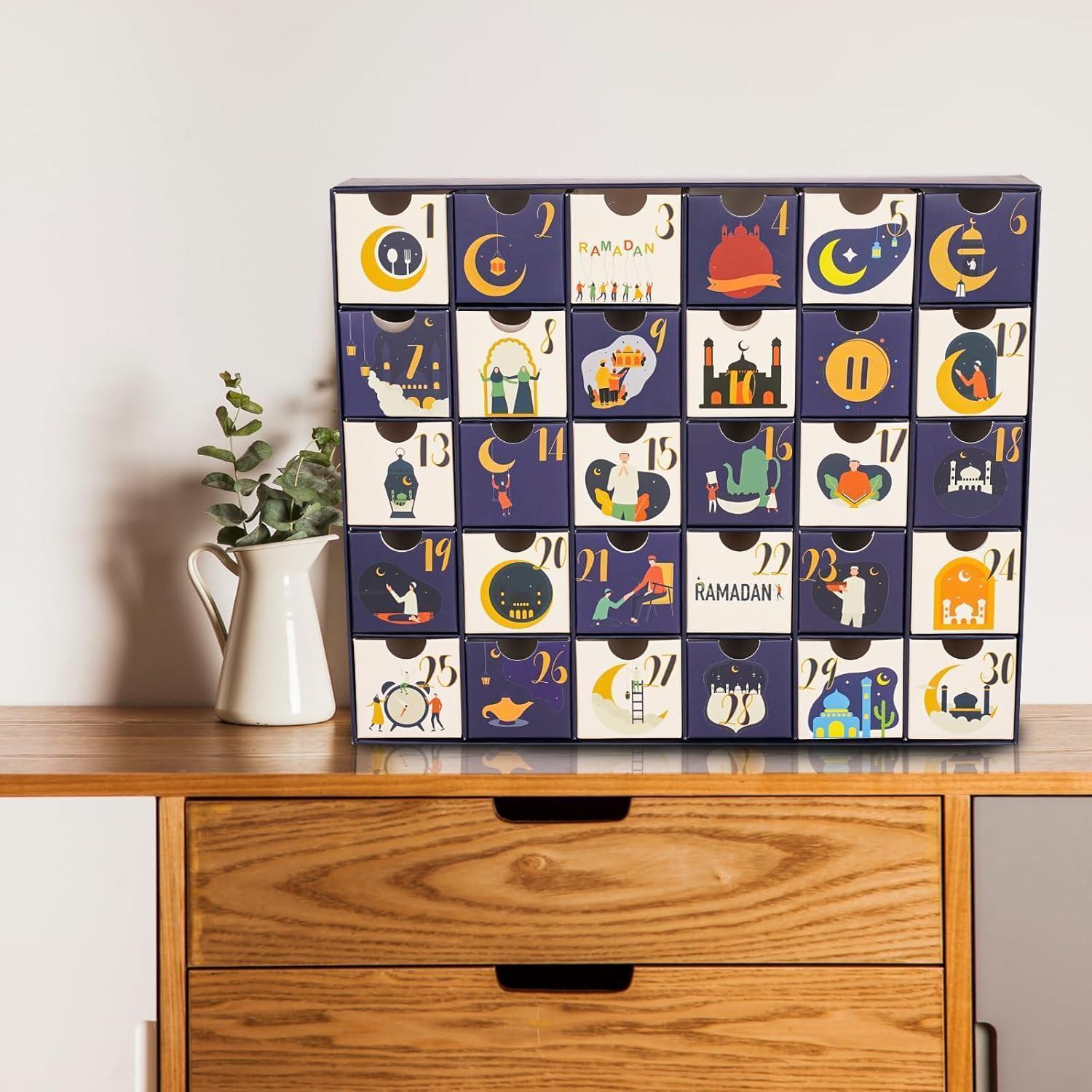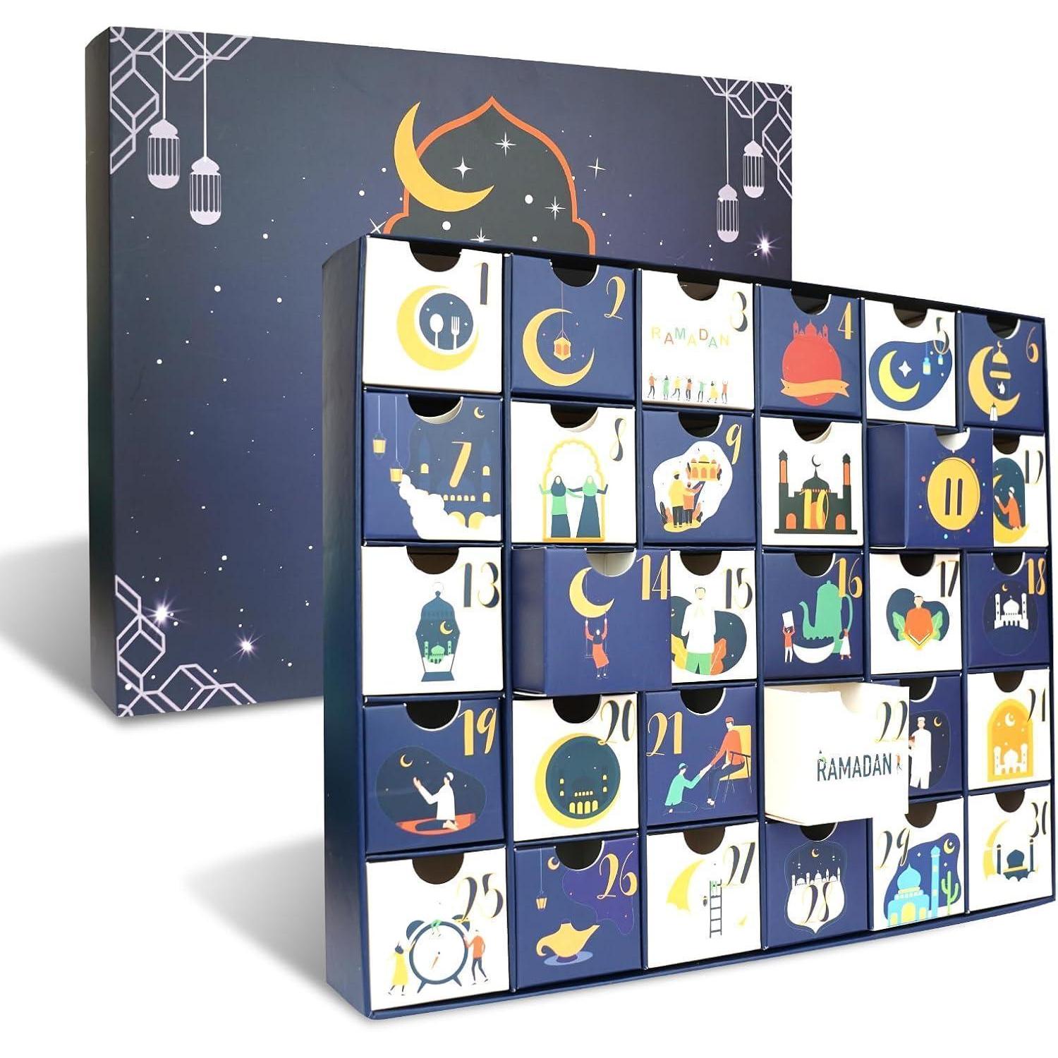 ???? Ramadan Kalender zum Befüllen: Entdecken Sie die Freude am Selbstgestalten mit unserem leeren Ramadan-Kalender. Perfekt, um mit Ihren Lieblingssüßigkeiten, Schokolade und kleinen Spielzeugen individuell befüllt zu werden.