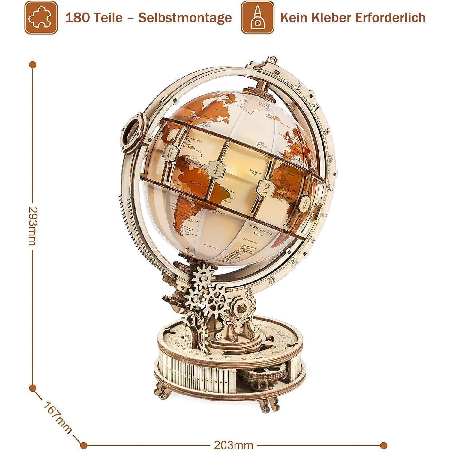 Rokr Holzpuzzle Erwachsene 3D Holz Puzzle Modell mit Globus Modellbau, 180 Teilen, Luminous Globe
